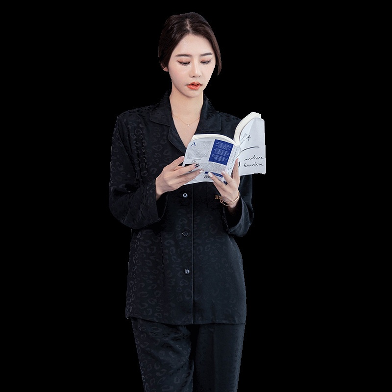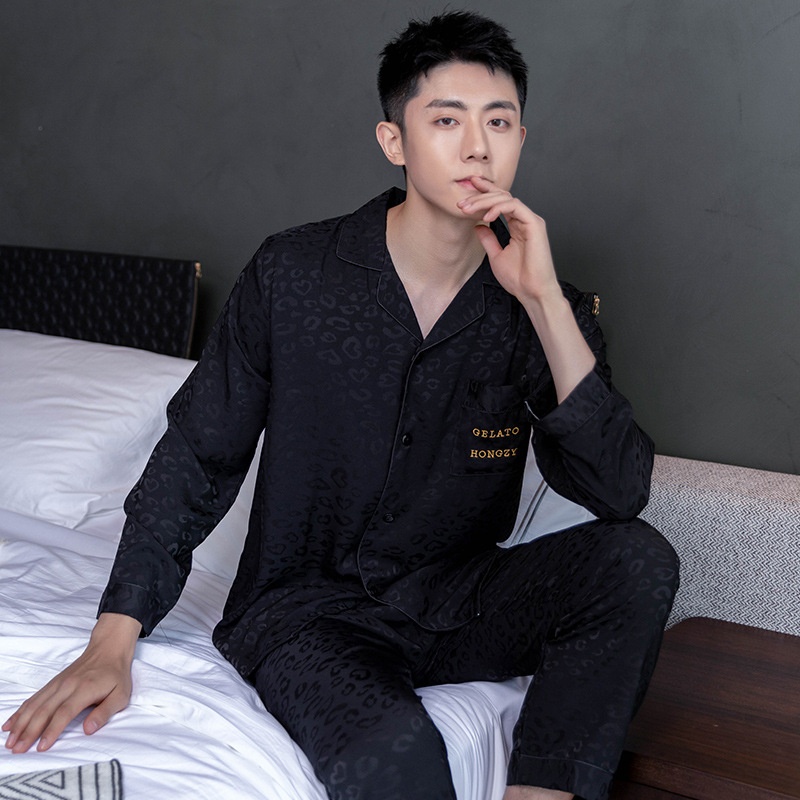 Couple Pajamas Spring And Autumn Ice Silk Men And Women Long-sleeved Thin Section Net Celebrity Cardigan Home Clothes Suit