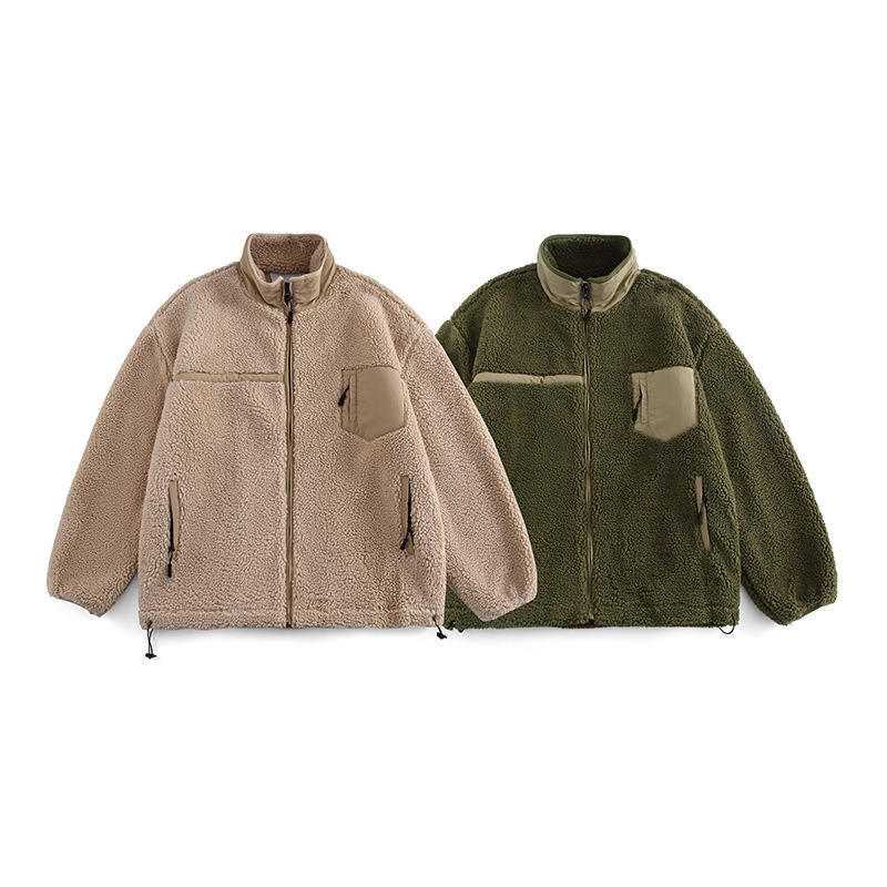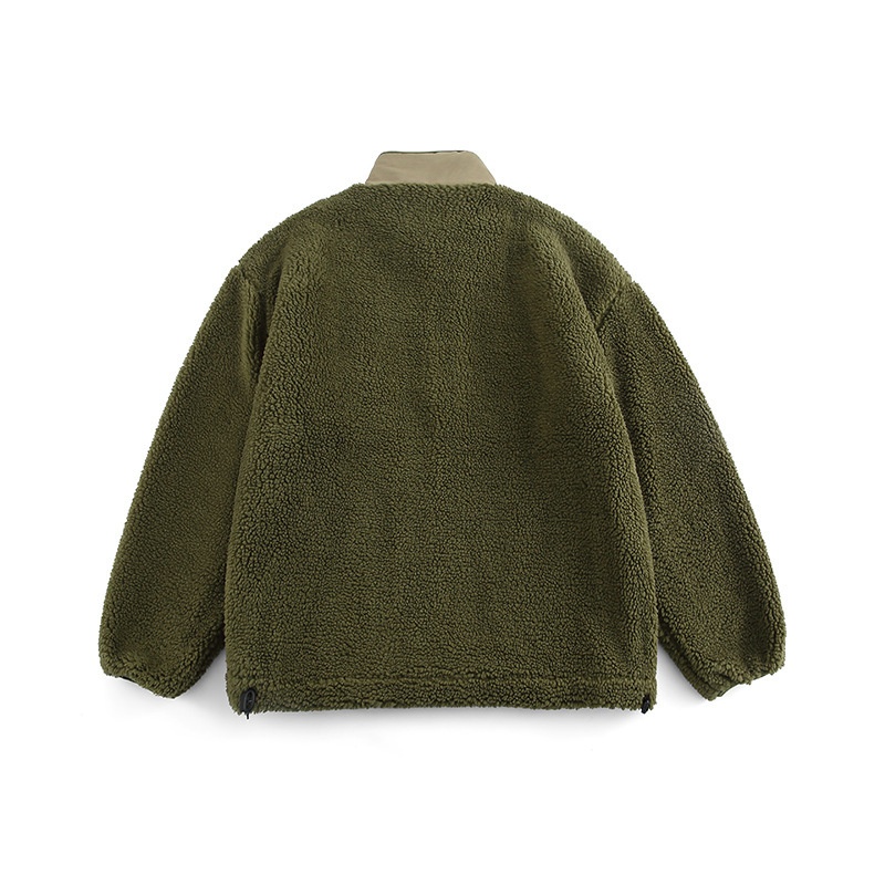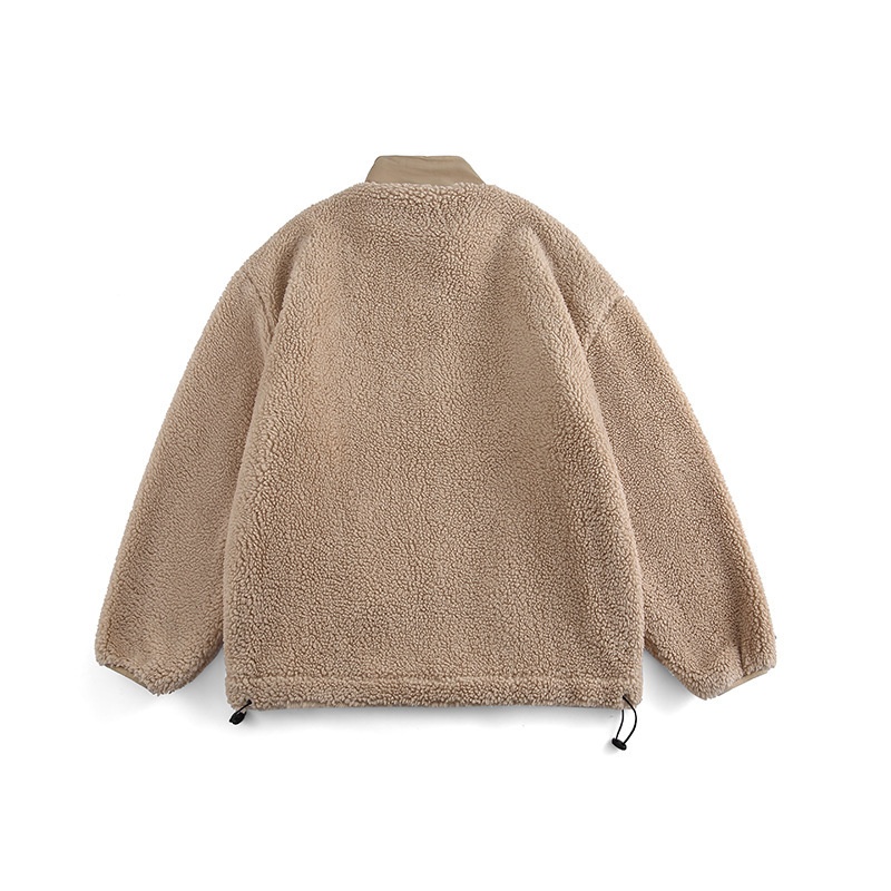 FORN3 Winter Solid Color Loose Lambswool Stand Collar Cotton Jacket Japanese Campus Youth Casual Cotton Jacket Men
