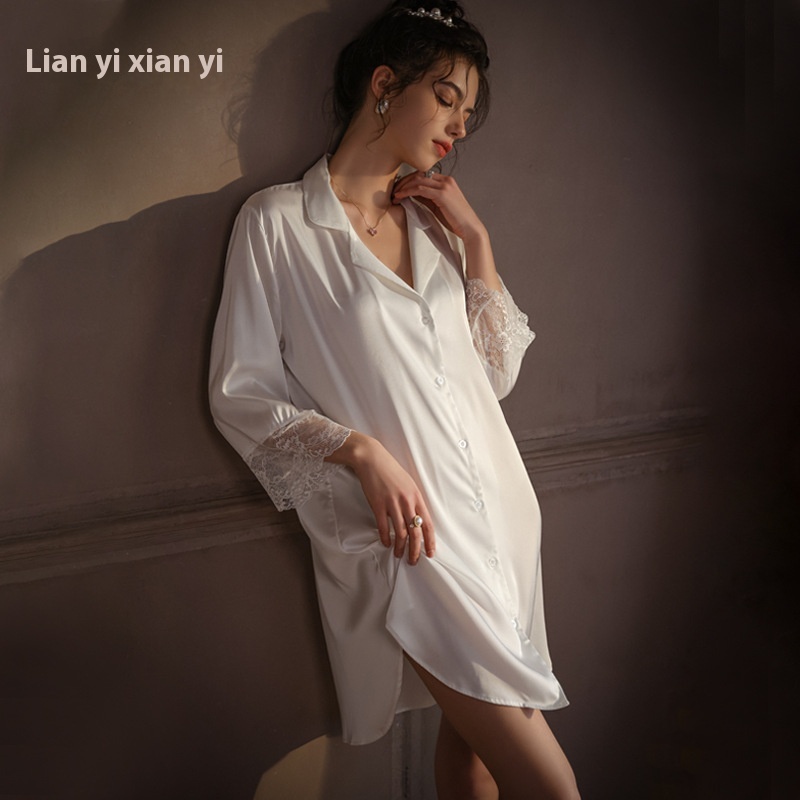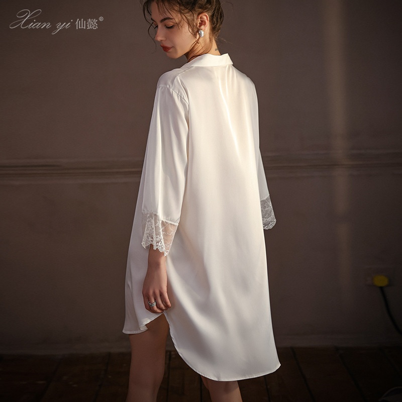 Xianyi Spring And Summer Thin Boyfriend Style Pajamas Ice Silk Long-sleeved Comfortable Shirt Nightdress Suit Women's Home Clothes509