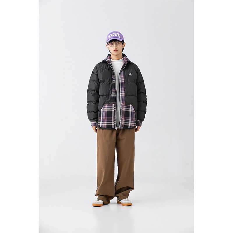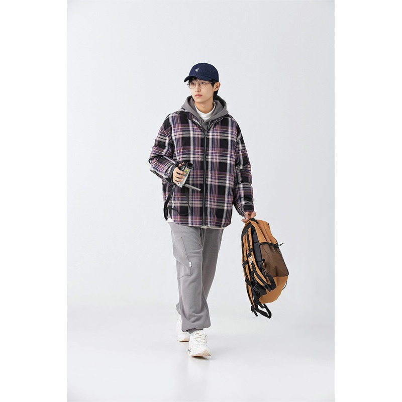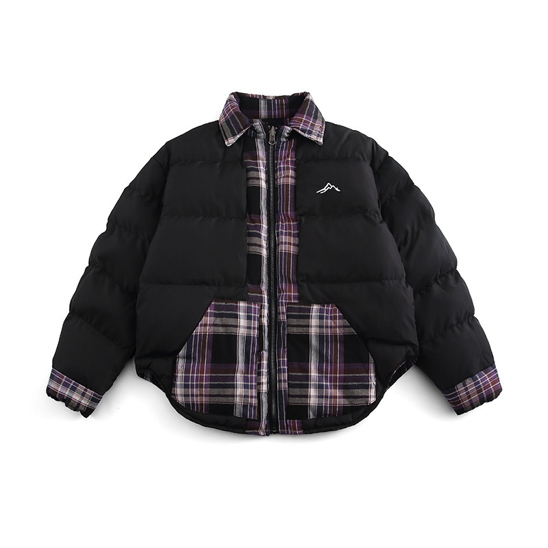 FORN3 Winter Striped Plaid Splicing Lapel Cotton Jacket Japanese Two-sided Wear Round Hem Cotton Jacket Men