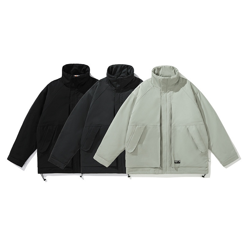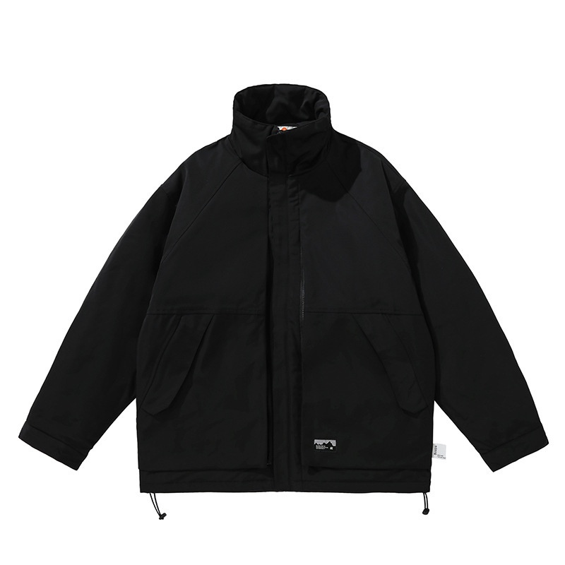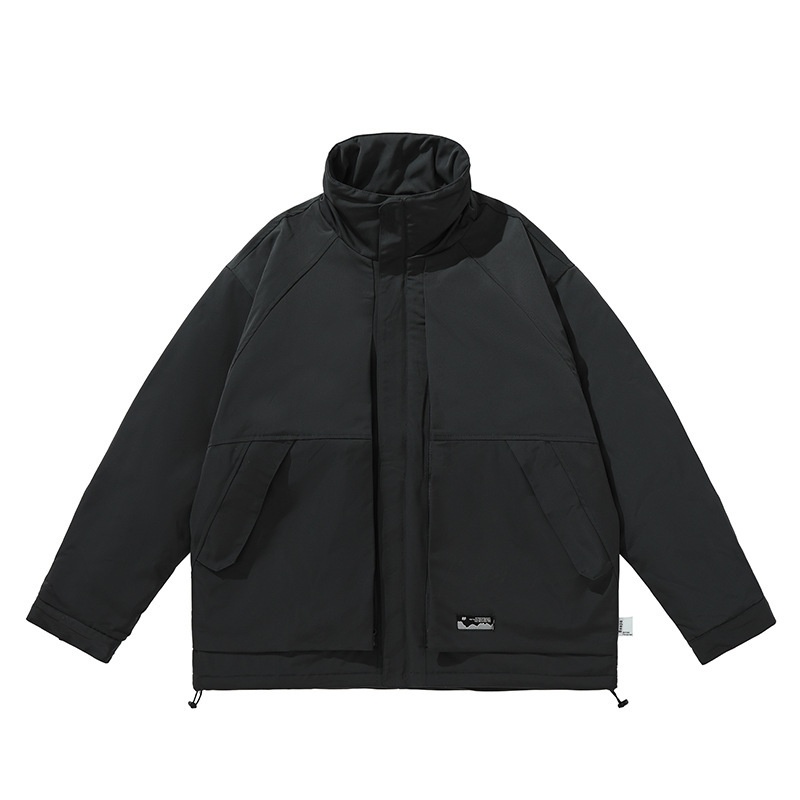 FORN3 Winter Solid Color Large Pocket Stand Collar Cotton Jacket Japanese Retro Outdoor Style Loose Cotton Jacket Men's