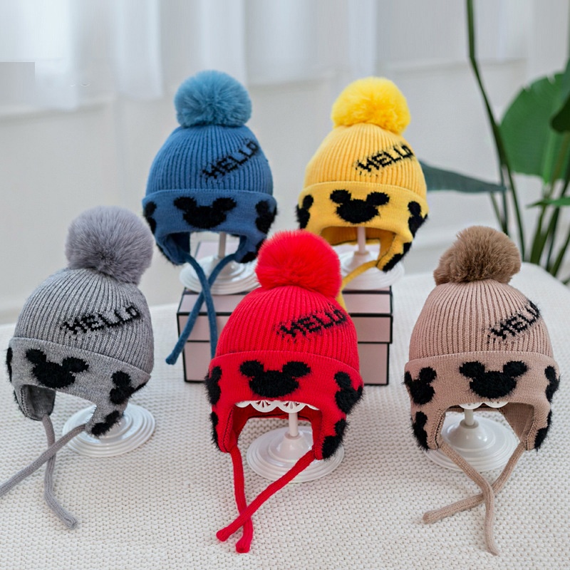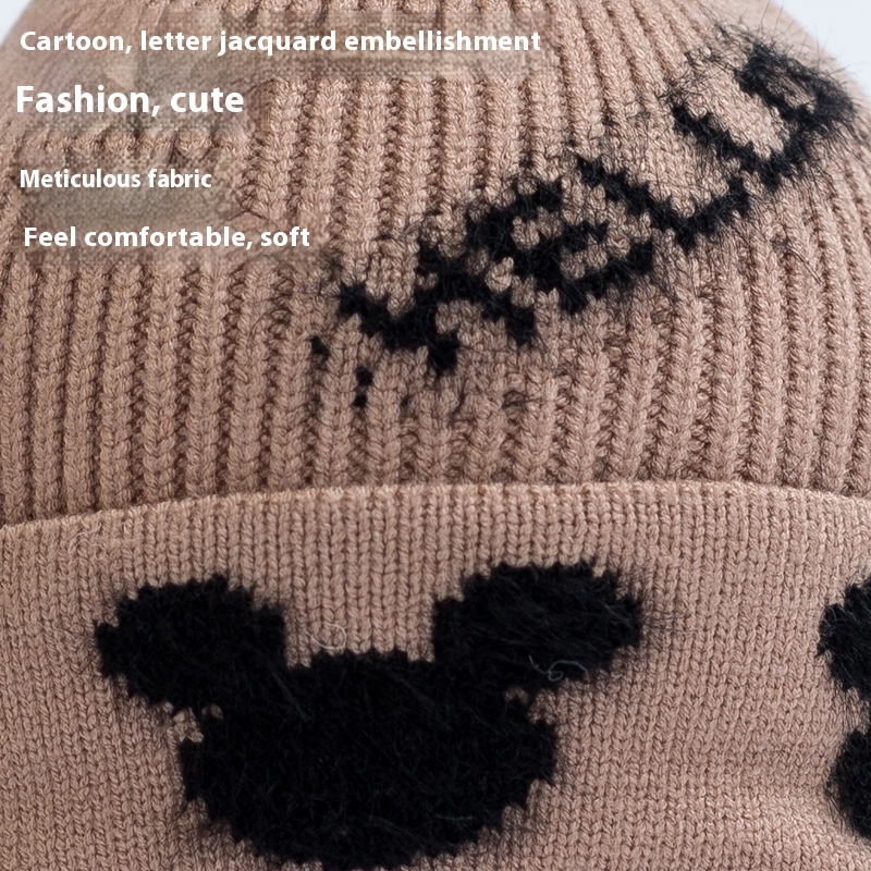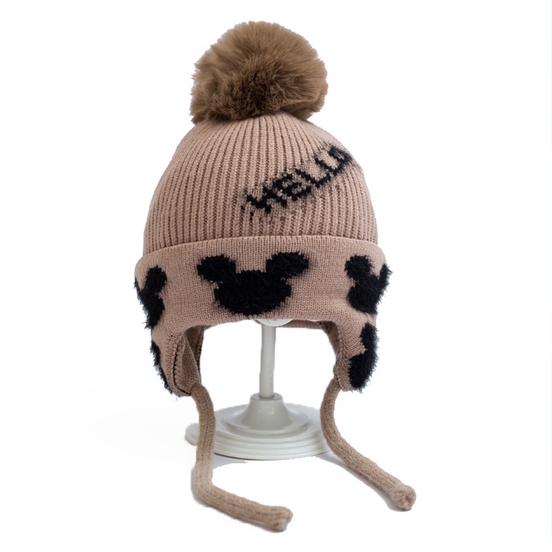 Winter Warm And Fashionable Outdoor Boy's Ear Protection Knitted Hat Cartoon Jacquard Cute Girl's Plus Velvet Thickened Woolen Hat