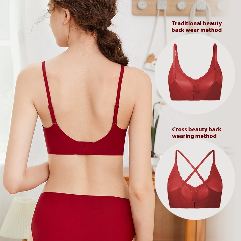 Bright Red Seamless Bra For Small Chest And Beautiful Back Without Steel Ring After The Zodiac Year,Buckle Bra Set Gather