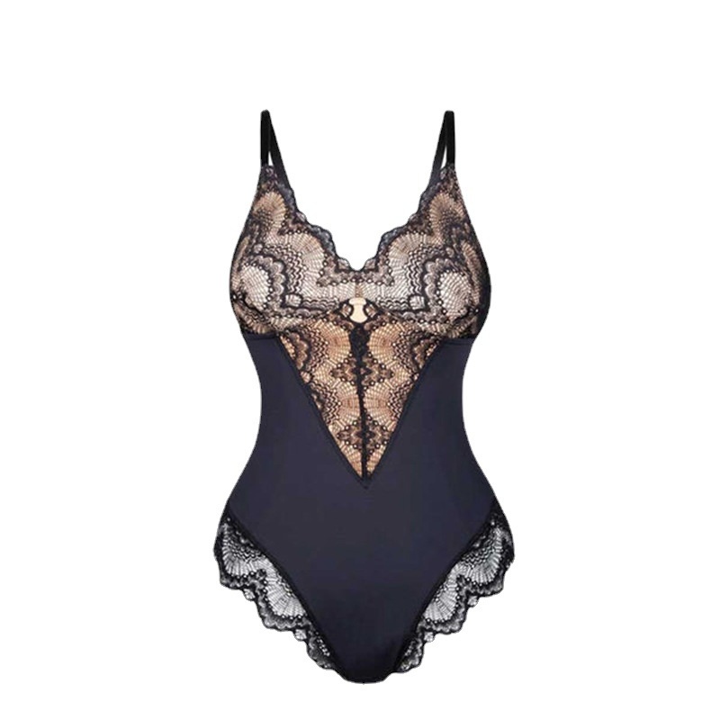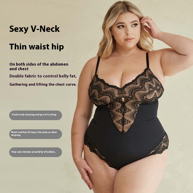 Sexy V-neck Lace Waist-Cinching Breathable Strappy Bodysuit