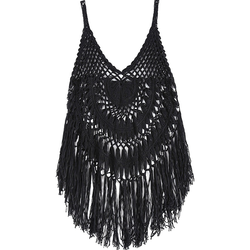 Beach Crochet Hollow Cardigan Hand Crocheted Lace Tassel Vest Top European And American Style Sexy Swimsuit Set For Women