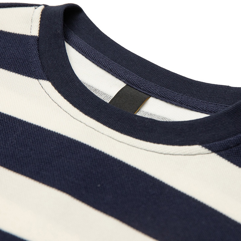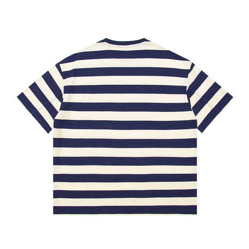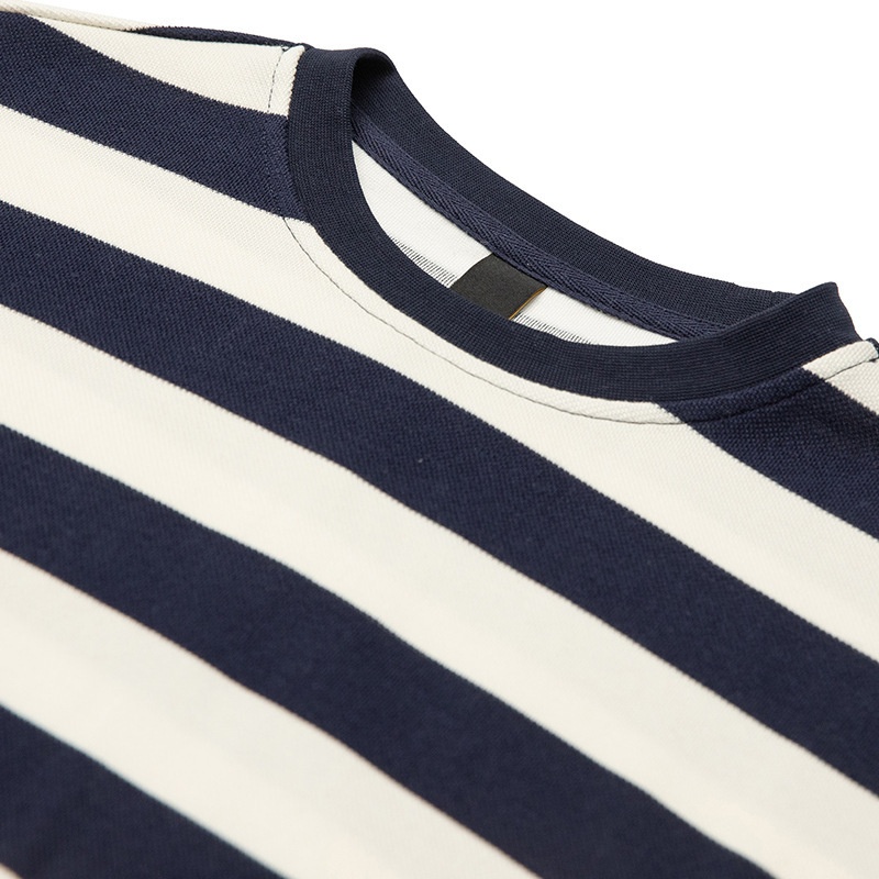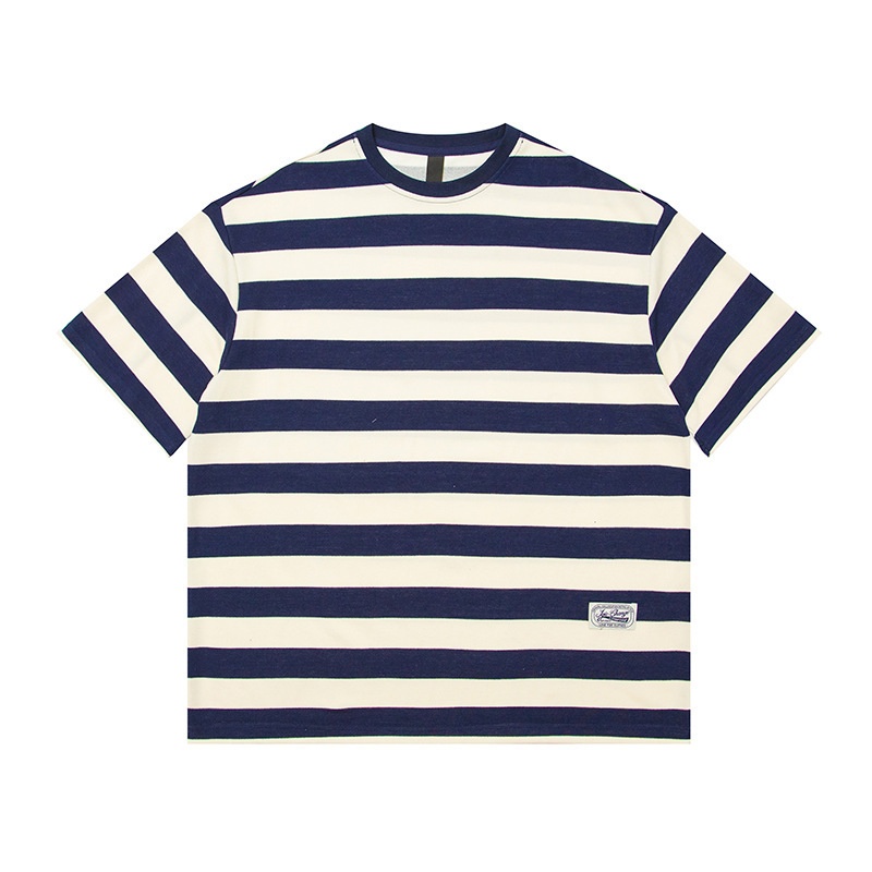 FORN3 Summer Blue And White Striped Round Neck Short Sleeve Japanese Retro260g Heavy Label Short Sleeve T-shirt Men