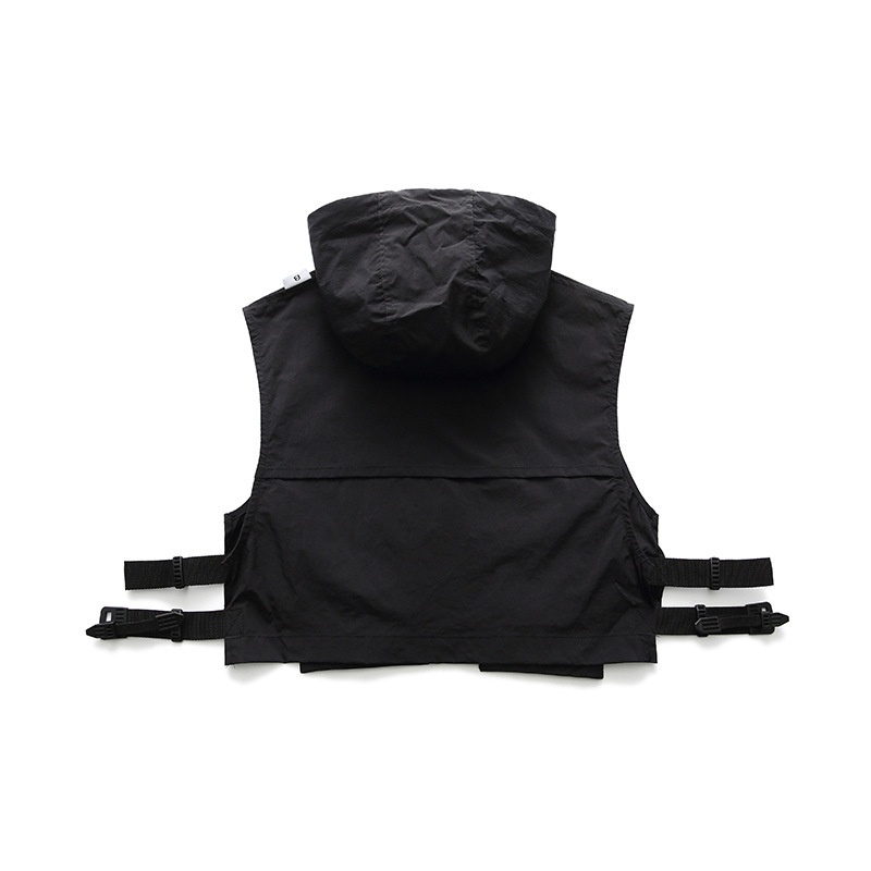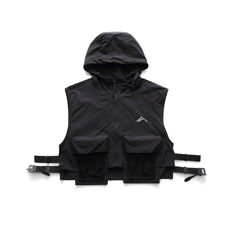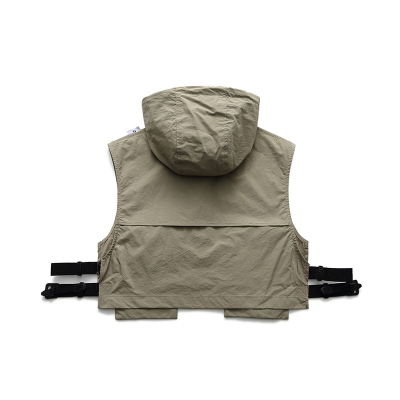 FORN3 Summer3 DGrid Large Pocket Hooded Vest Japanese Retro Outdoor Workwear Sleeveless Top