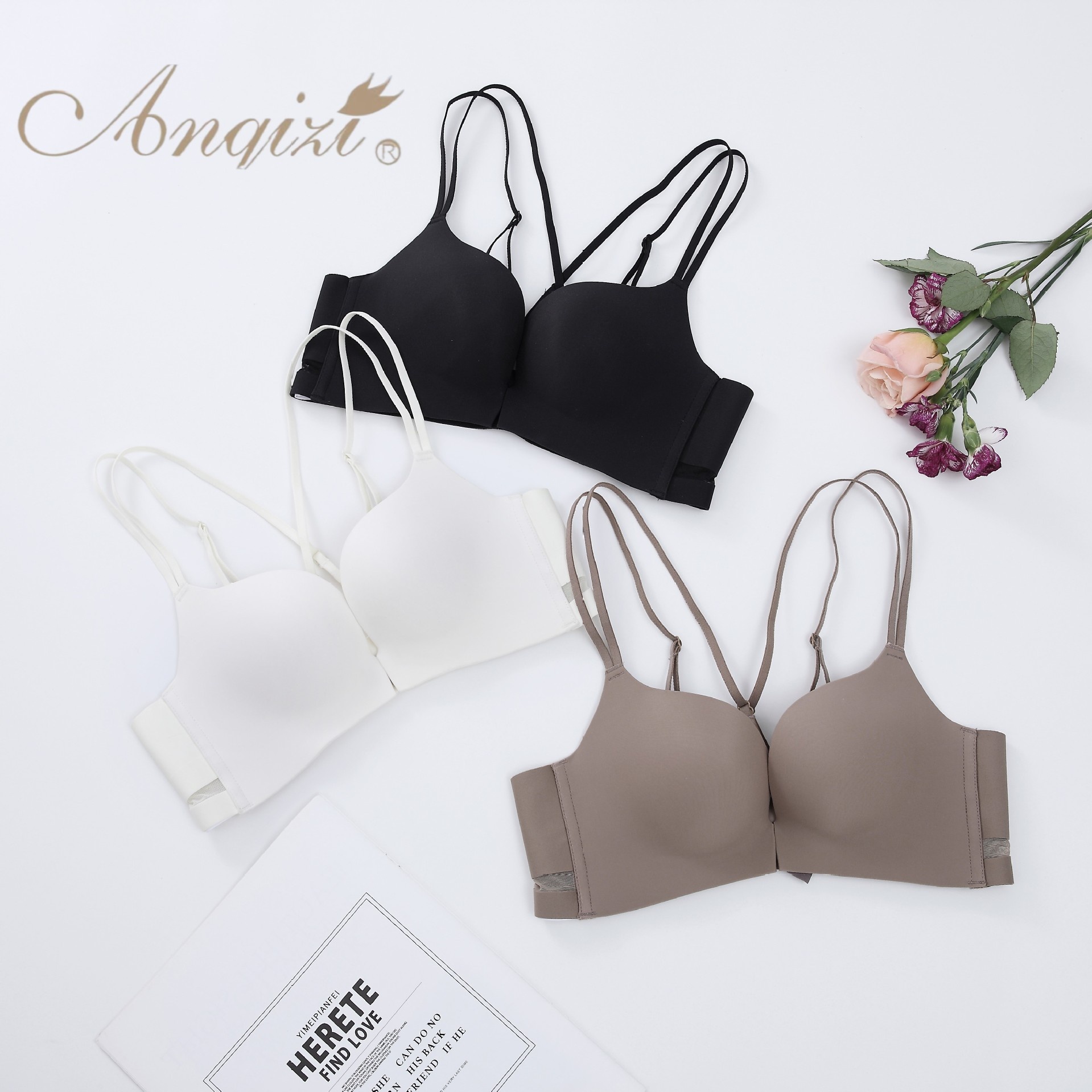 Simple High-end Beautiful Back Front Buckle Bra Small Chest Gathered Without Steel Ring Seamless Underwear Breathable Bra Smooth Bra