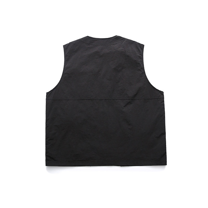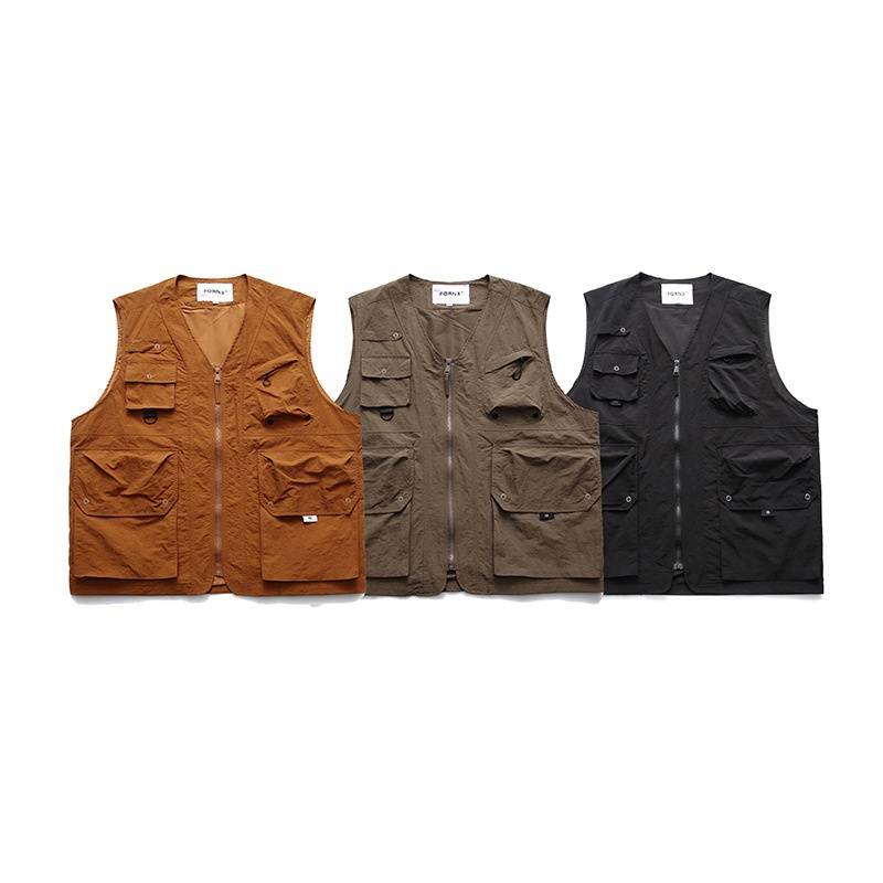 FORN3 Spring Solid Color Multi-Pocket Collarless Workwear Vest Japanese Retro Loose Sleeveless Top Men