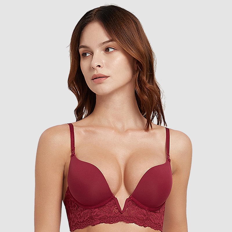 French Style Deep VSexy Lace Bra Soft Steel Ring Thin Underwear Women's Small Chest Gathered Breast Collection Bra