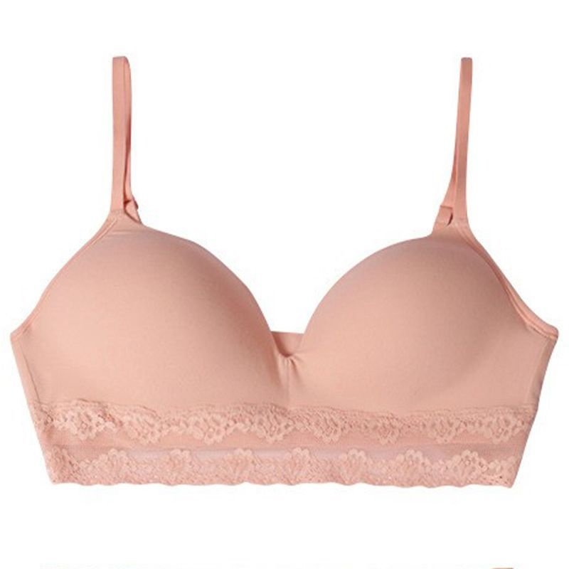 Japanese And Korean Simple Thin Lace Bra Smooth Small Chest Underwear Women's No Steel Ring Gathered Comfortable Breathable Bra