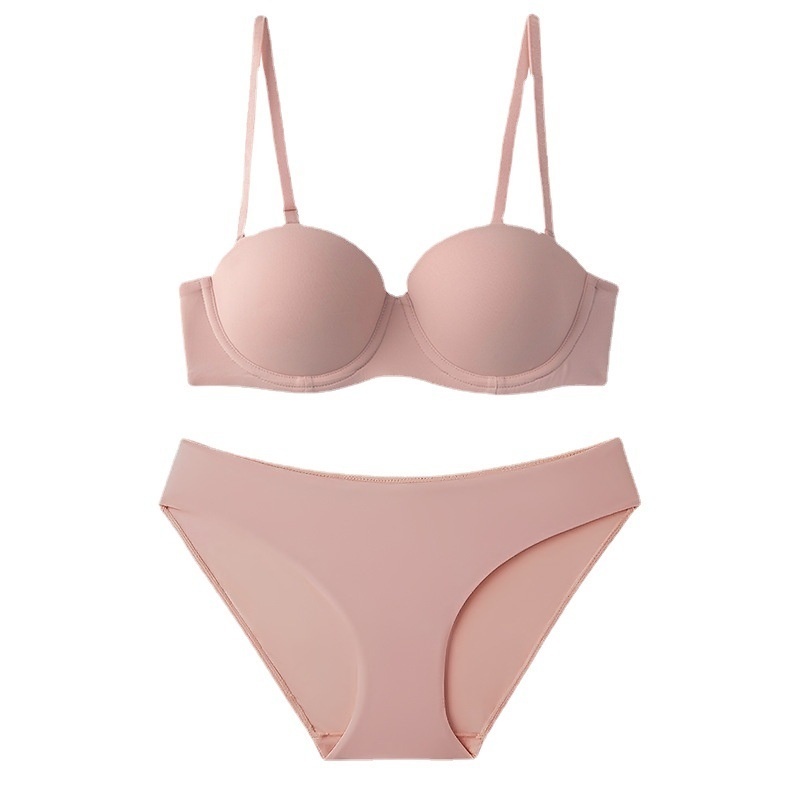 Smooth1/2 Cup Underwear Women's Top Thin Bottom Thick Thin Bra Soft Steel Ring Adjustable Bra Set