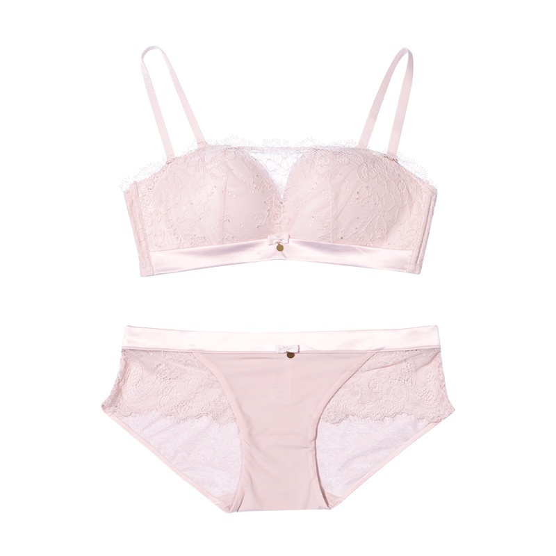Style Bra Set Eyelash Lace Comfortable No Steel Ring Sexy Bra Anti-exposure Tube Top Girl Underwear