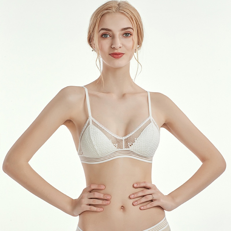 French Style Underwear Women's No-rim Bra Sexy Lace Triangle Cup European And American Bra Foreign Single