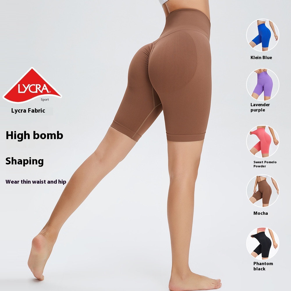 Lycra Peach Hip Fitness Yoga Pants Women's High Waist Hip-lifting Five-point Tight Sports Pants Seamless Yoga Shorts