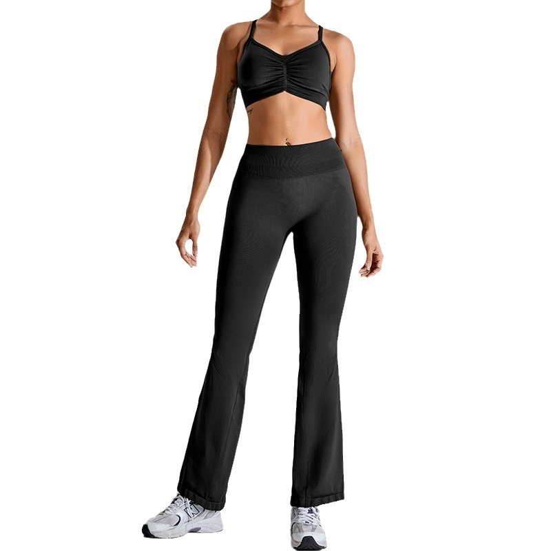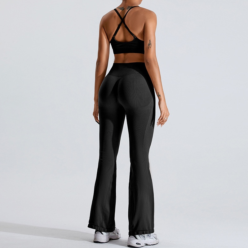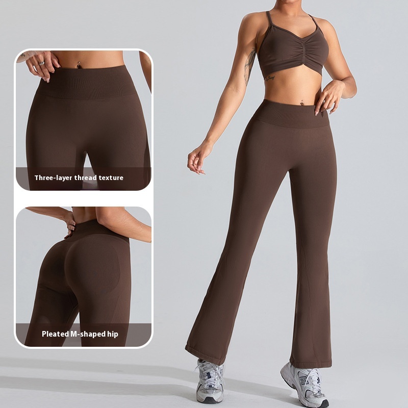 Seamless Yoga Suit For Women Outdoor Leisure Quick-drying Sports Suit For Women Peach Hip-lifting Flared Quick-drying Running Fitness Pants