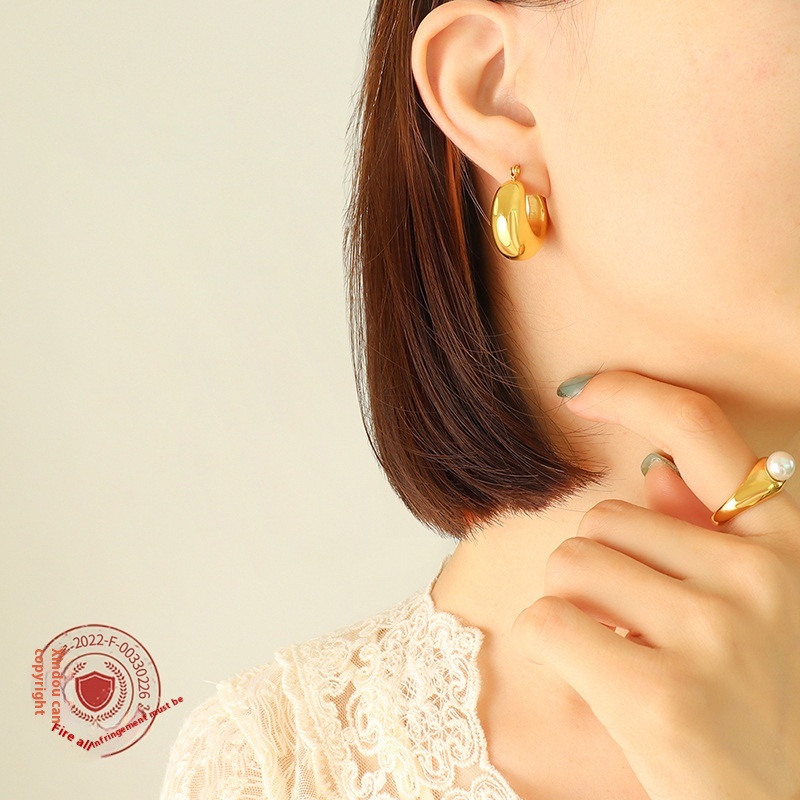 European And American Style Niche Non-fading U-shaped Geometric Earrings For Women Titanium Steel Material Gold-plated Ear Buckles One Piece Dropshipping