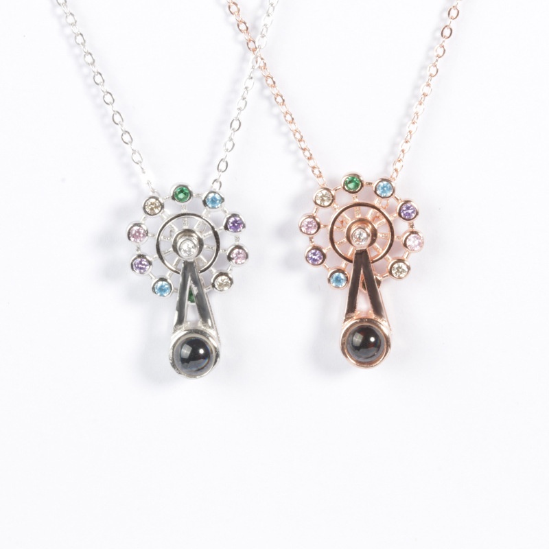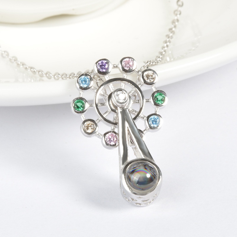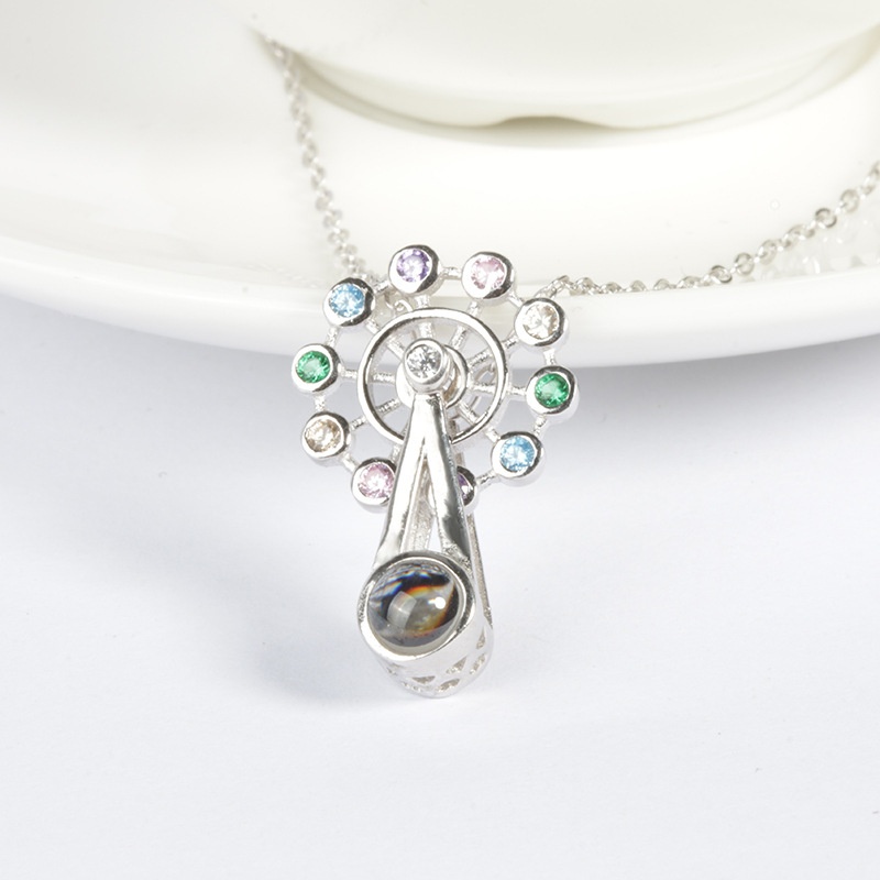 Silver Jewelry City Direct S925 Silver Love Memory Ferris Wheel Rotating Projection Necklace One Hundred Languages