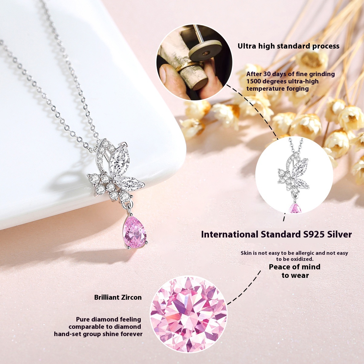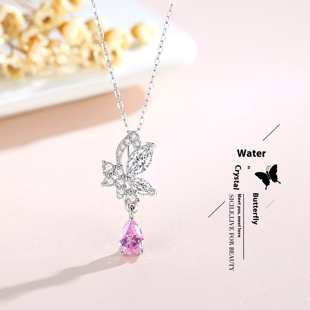 Ferris Wheel Crystal Butterfly Necklace Female All-match High-end S925 Sterling Silver Niche Design Clavicle Chain Jewelry