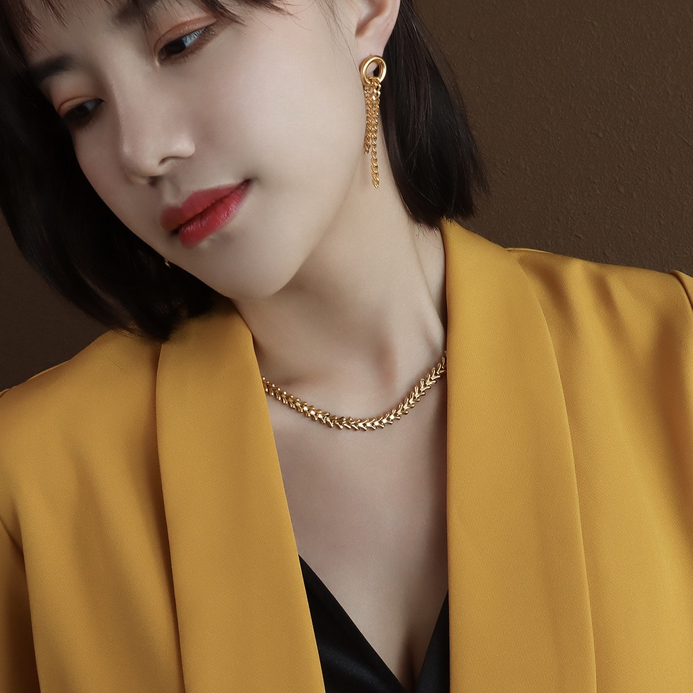 Marka European And American Style Fashion Personality Leaf Necklace Clavicle Chain Bracelet Titanium Steel18k Gold Jewelry Necklace Set