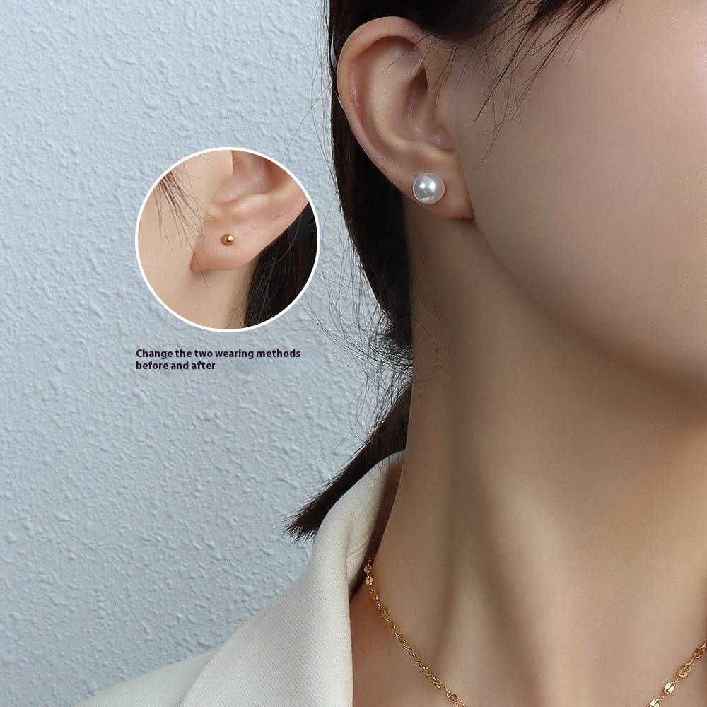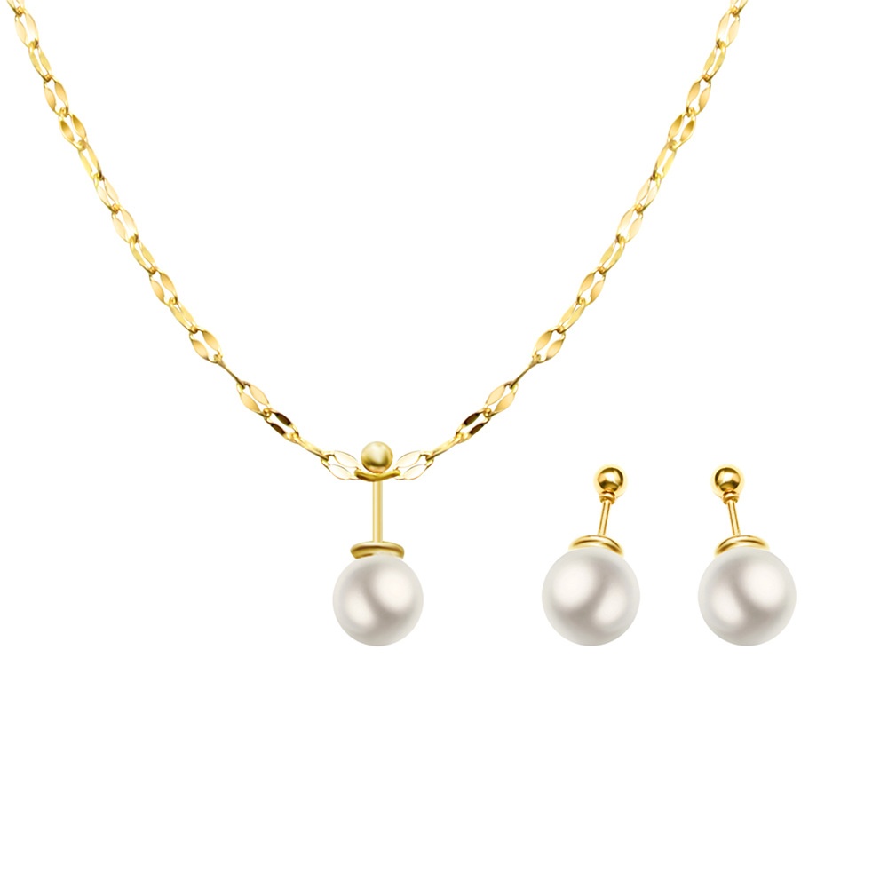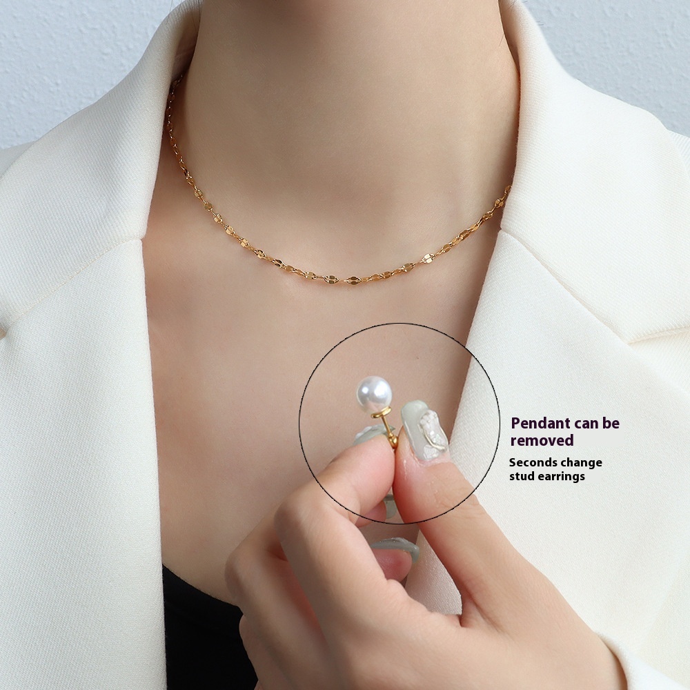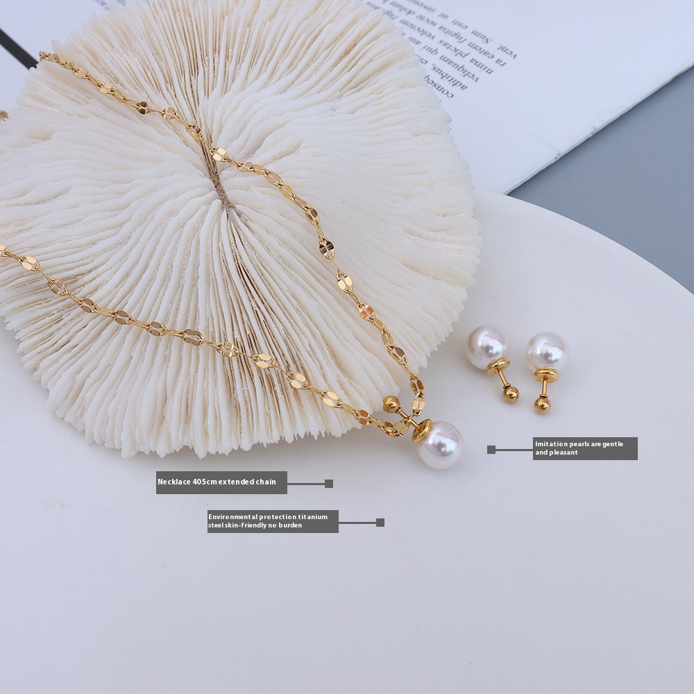 French Niche Design Choker Imitation Pearl Earrings Clavicle Chain Necklace Titanium Steel18k Gold Jewelry Set