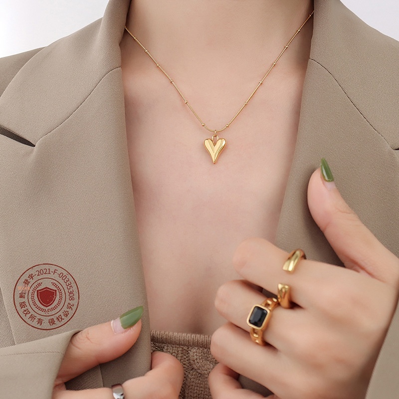 European And American Temperament Style Love Pendant Long Necklace Titanium Steel Plated18 KReal Gold Clavicle Chain P575