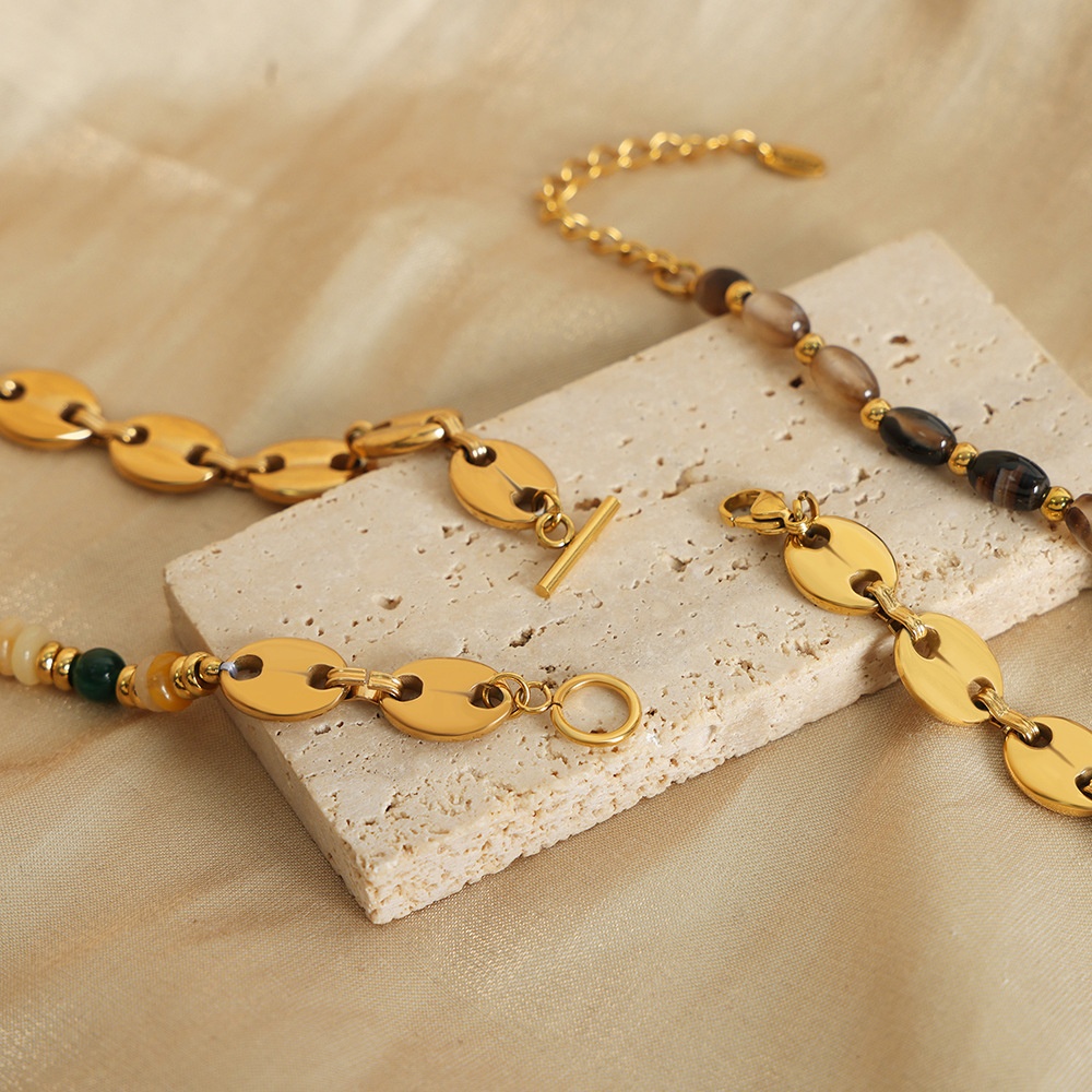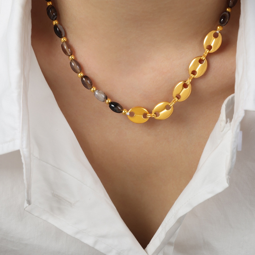 Hot-selling Niche Personality Geometric Jewelry Pig Nose Splicing Agate Bead Design Titanium Steel Necklace