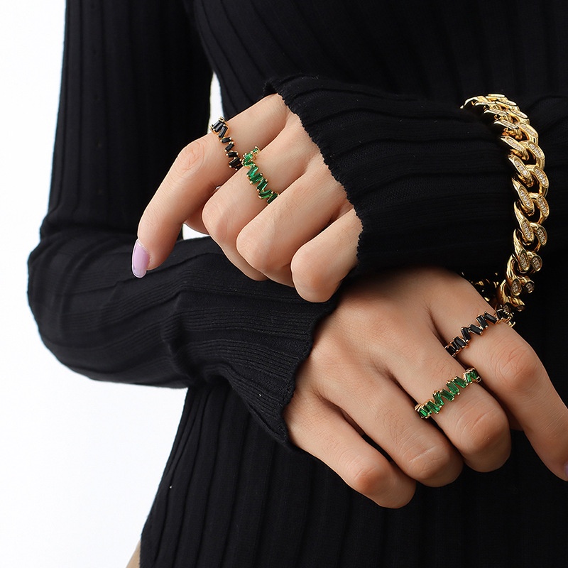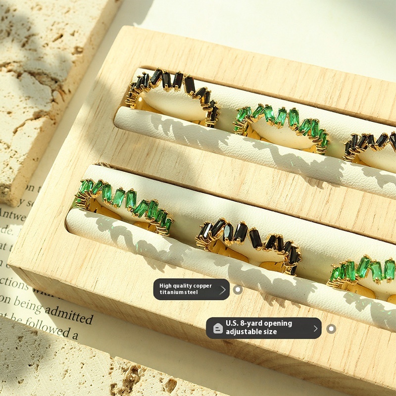 Popular Full Diamond Inlaid Index Finger Ring European And American Light Luxury Style Green Black Nano Stone Copper Material Ring Jewelry
