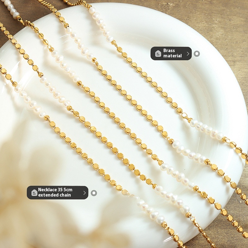 Simple And Fashionable European And American Style Temperament Does Not Fade Copper Material Freshwater Pearl Lentil Splicing Necklace Jewelry