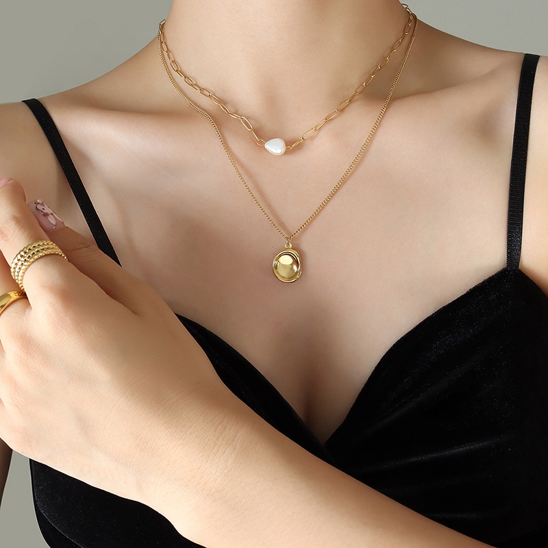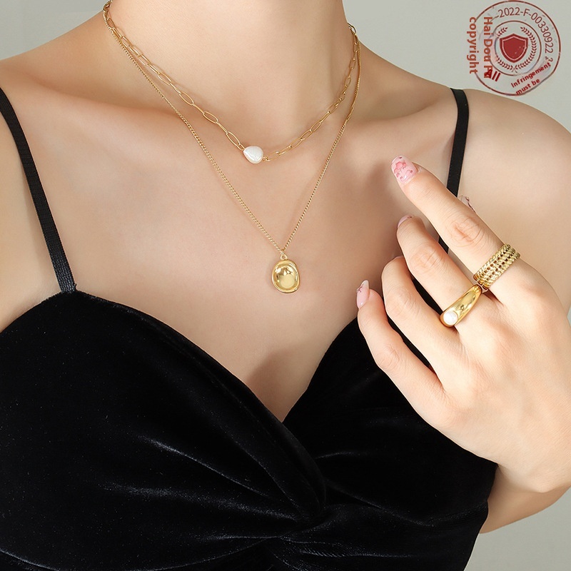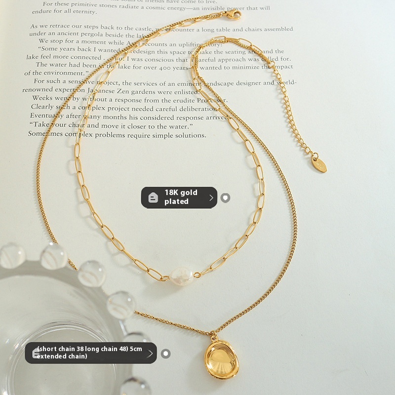 European And American Concave And Convex Pendant Double Layer Stacked Freshwater Pearl Necklace Female Niche Design Gold-plated Clavicle Necklace P831
