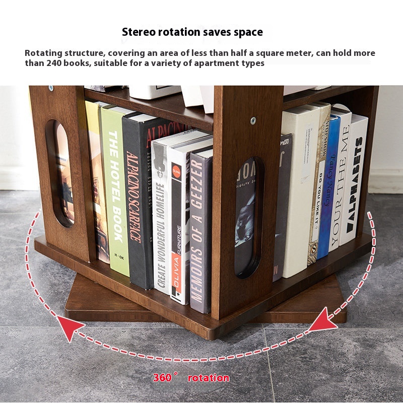 Jiayi Solid Wood Rotating Bookshelf360 Degree Bookcase Student Home Floor-standing Shelf Creative Living Room Storage Bookcase