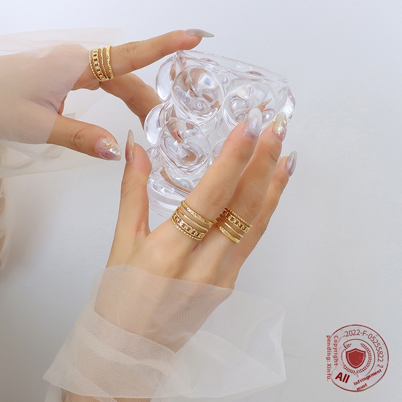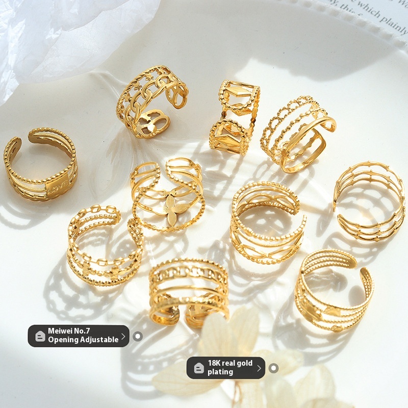 European And American Hot-selling Open Titanium Steel Gold-plated Geometric Mix And Match Fashion Diverse Rings Do Not Fade Hip-hop Rings