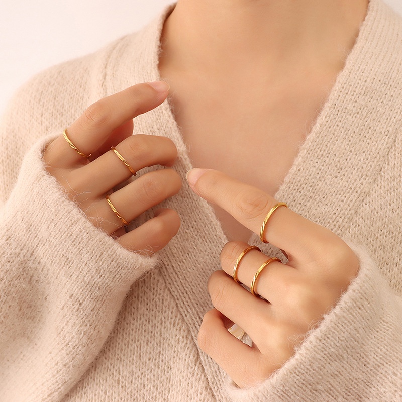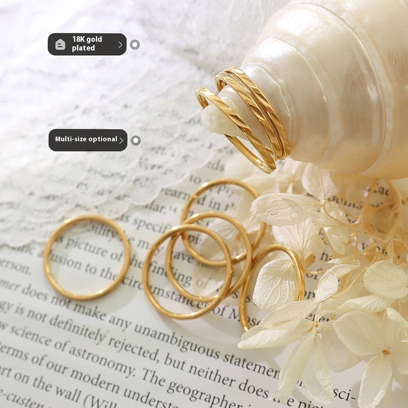 Korean Fashion All-match Pattern Thin Ring Titanium Steel Material Plated With18 KReal Gold Plain Ring Jewelry A091