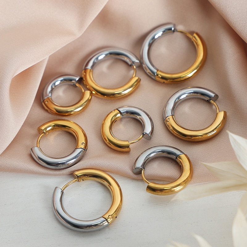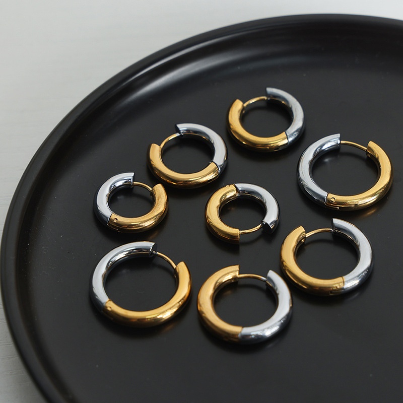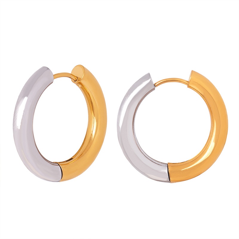 Style Simple Personality Cold Style Jewelry Glossy Plain Ring Gold Steel Two-color Splicing Design Titanium Steel Gold-plated Earrings