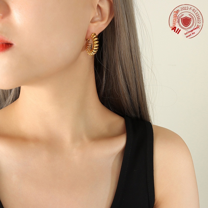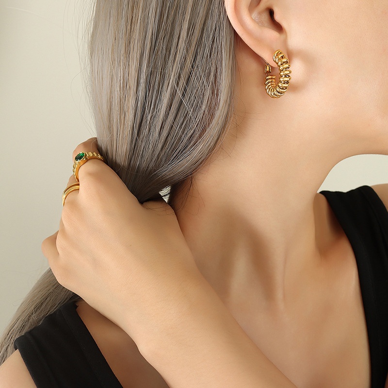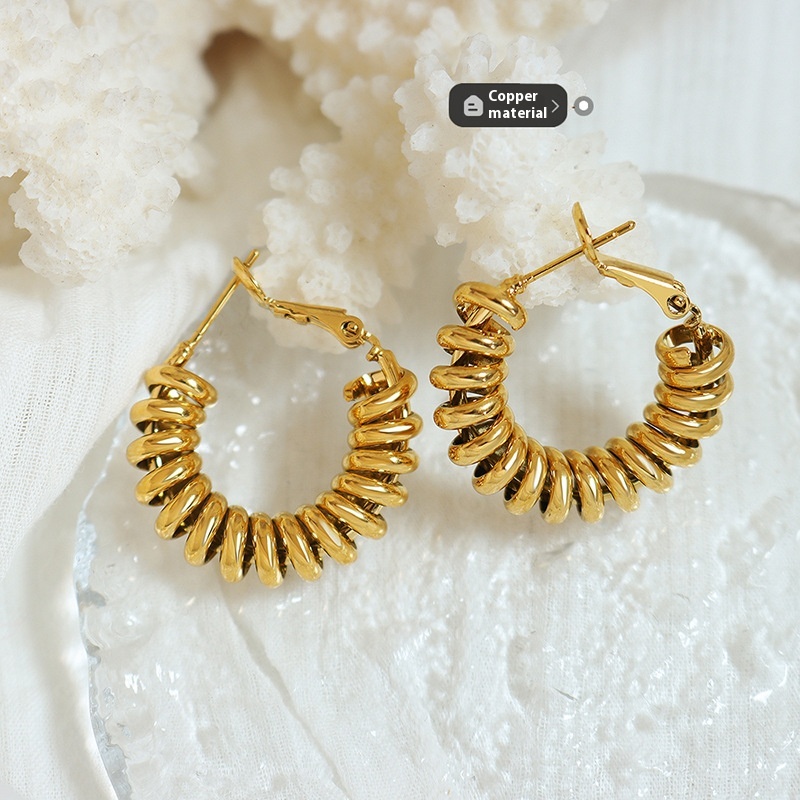 Ring Spiral Buckle U-shaped Earrings European And American Neutral Style Copper Material Handmade Personality Versatile Earrings