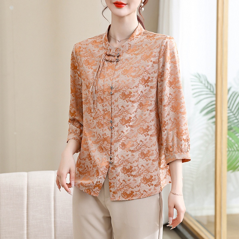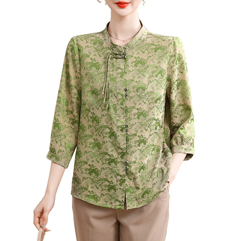 Style Mother's Shirt Buttoned Cardigan Western-style Printed Middle-aged And Elderly Mother's Summer Dress Three-quarter Sleeve Top FEX804