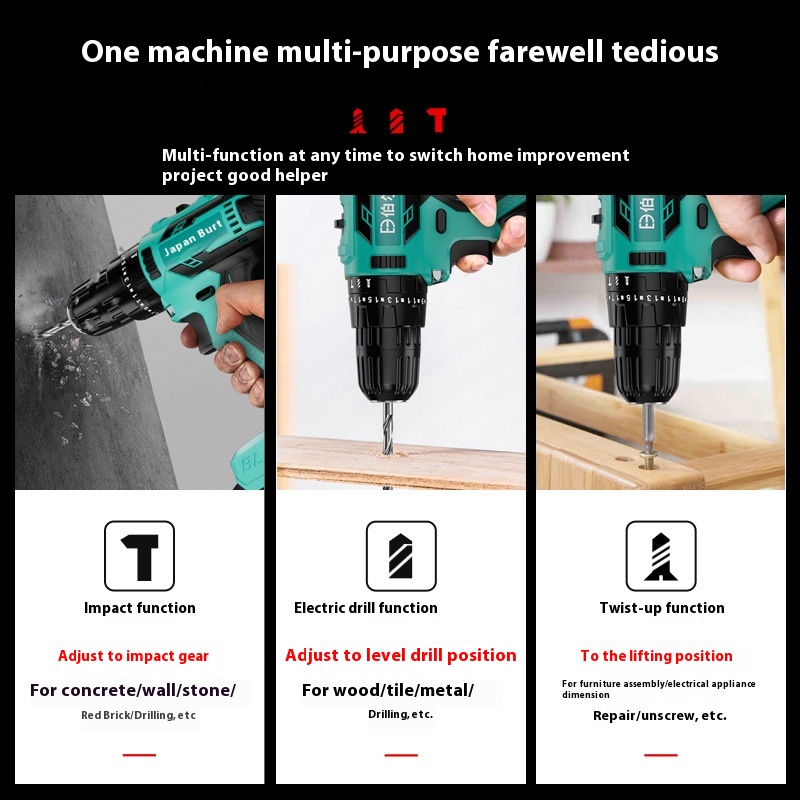 German Household Electric Drill, Brushless Hand Drill, Rechargeable Electric To Lithium Electric Tool, Impact Pistol Drill, Electric Screwdriver