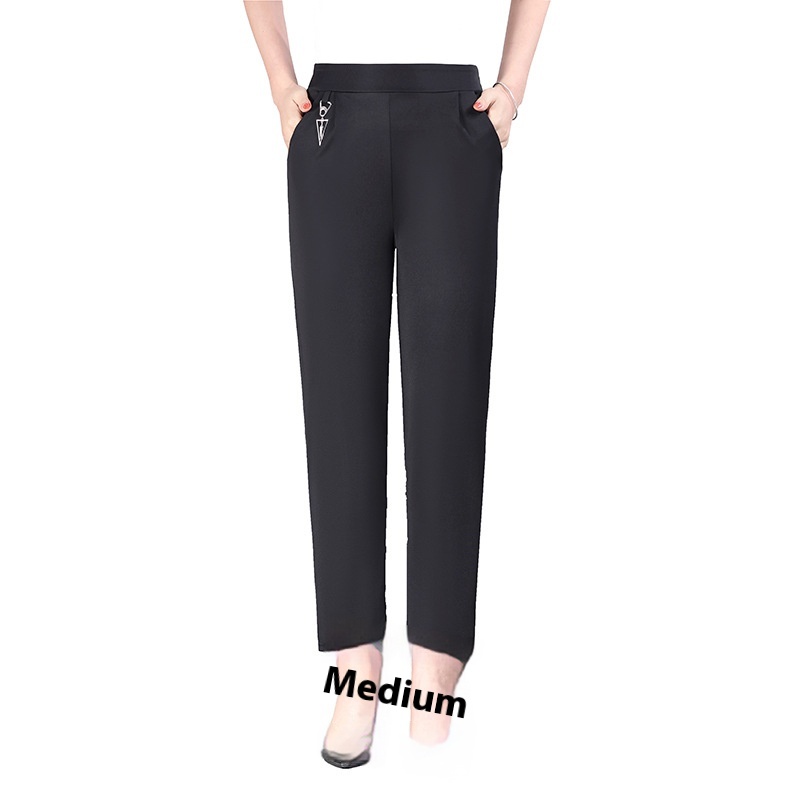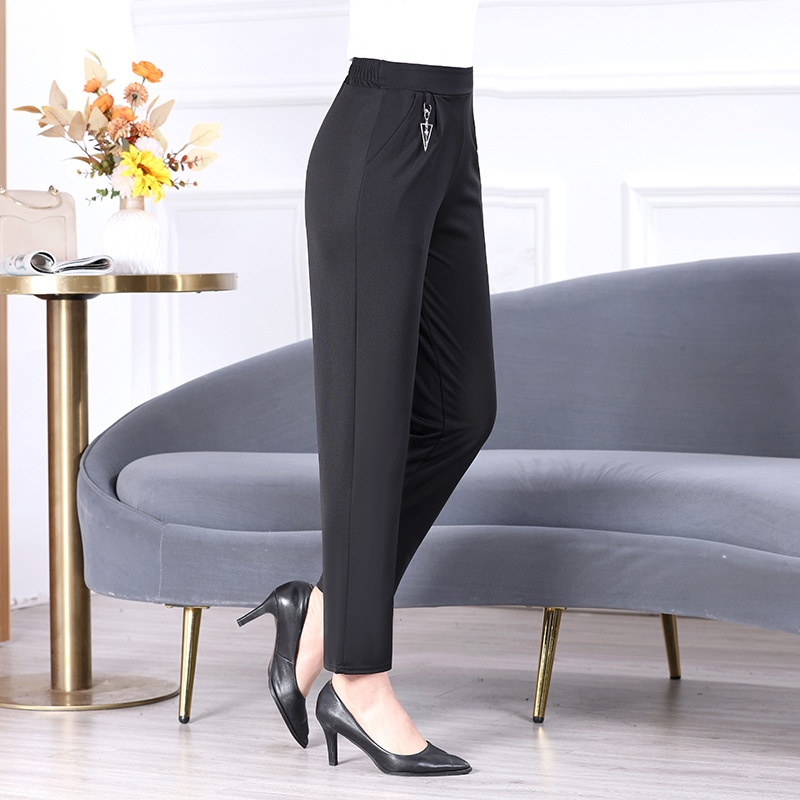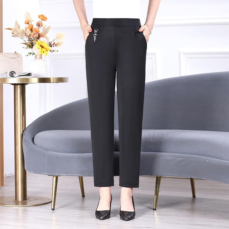 Middle-aged And Elderly Women's Pants Spring And Summer Solid Color Nine-point Matching Pants50-year-old Mother Pants Elastic Waist High Waist Straight Pants Thin Style