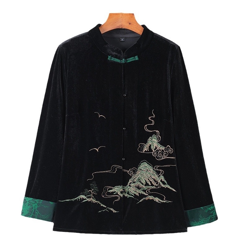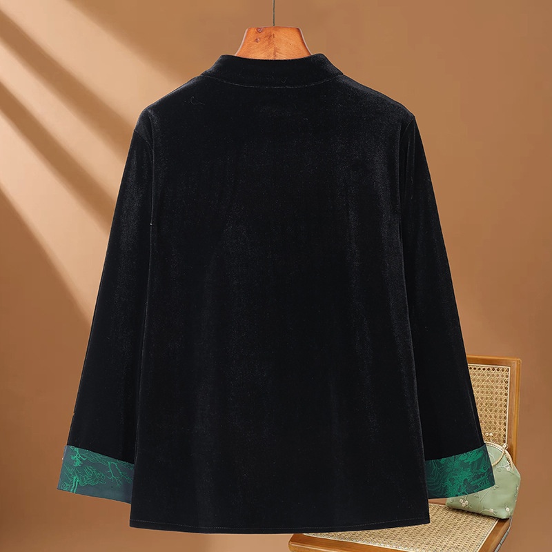 Pretty Wife Spring Style Gold Velvet Short Jacket Women's Long-sleeved Tops Chinese Style Buttoned Mother's Tops