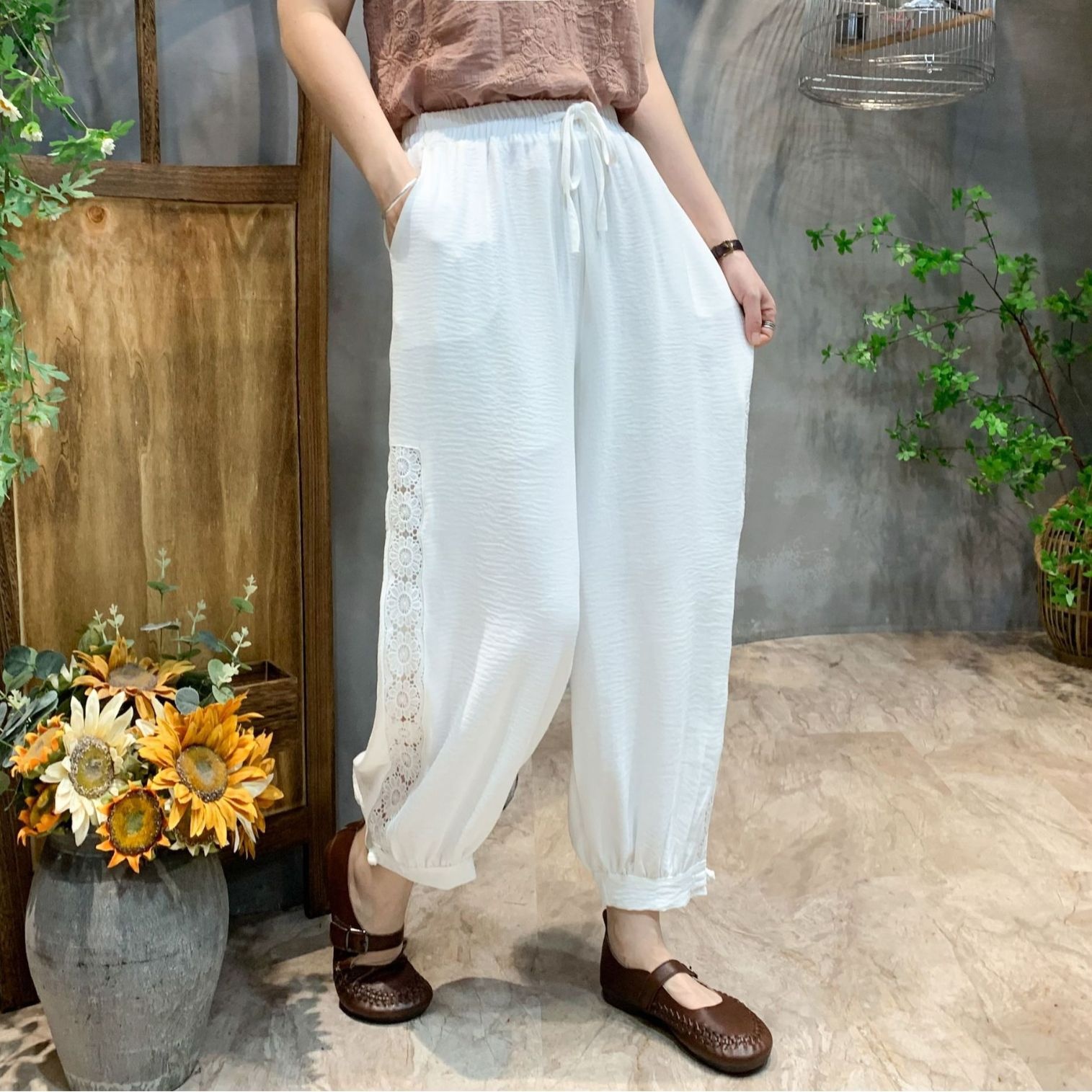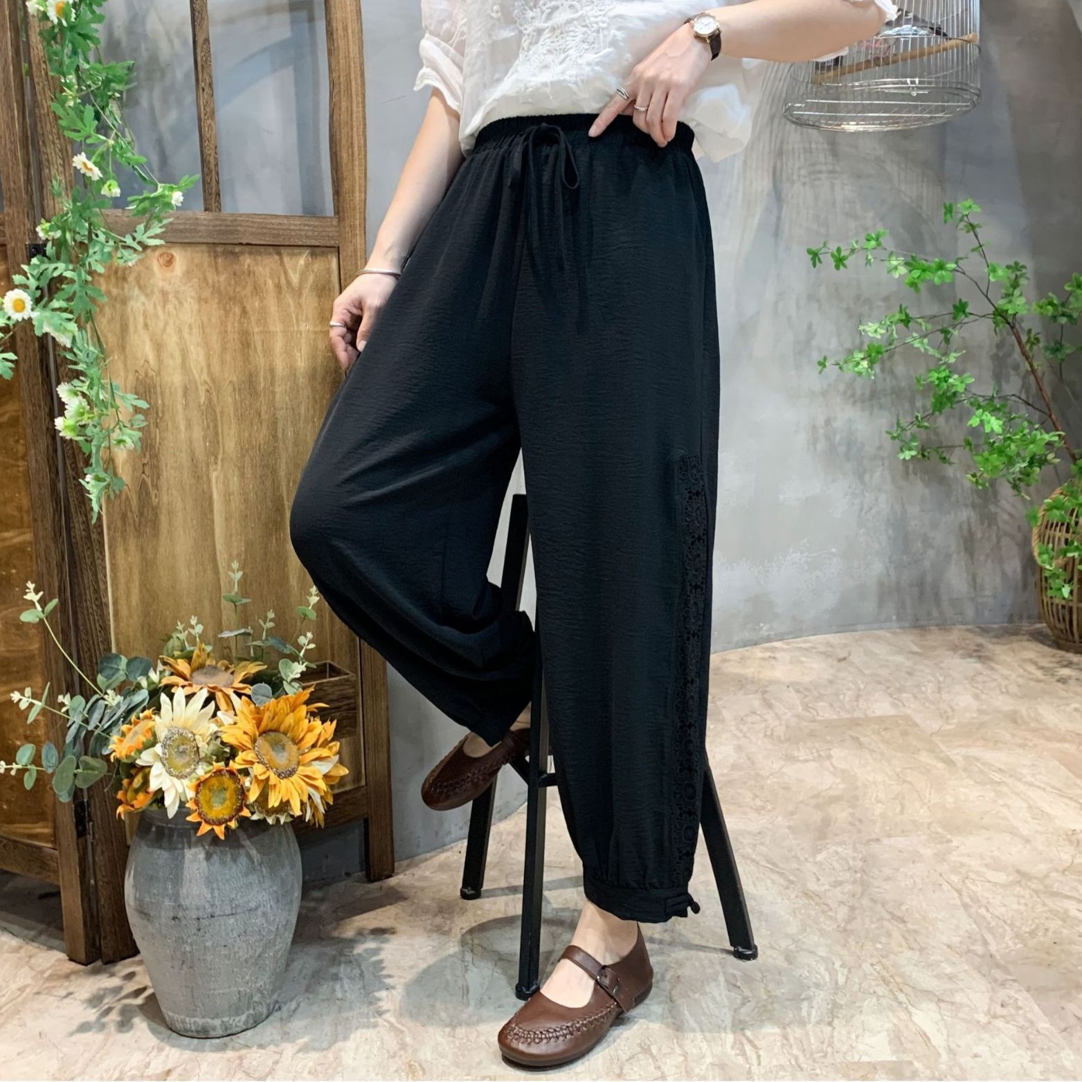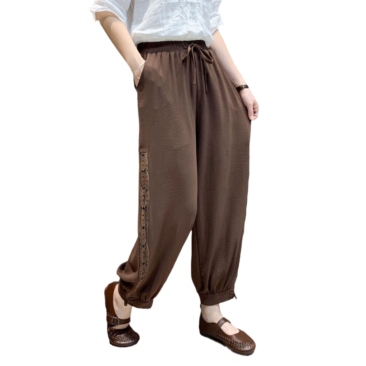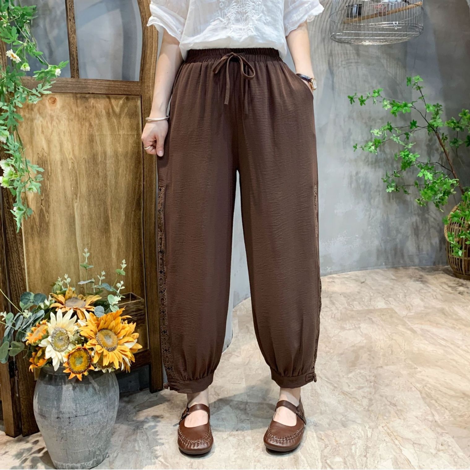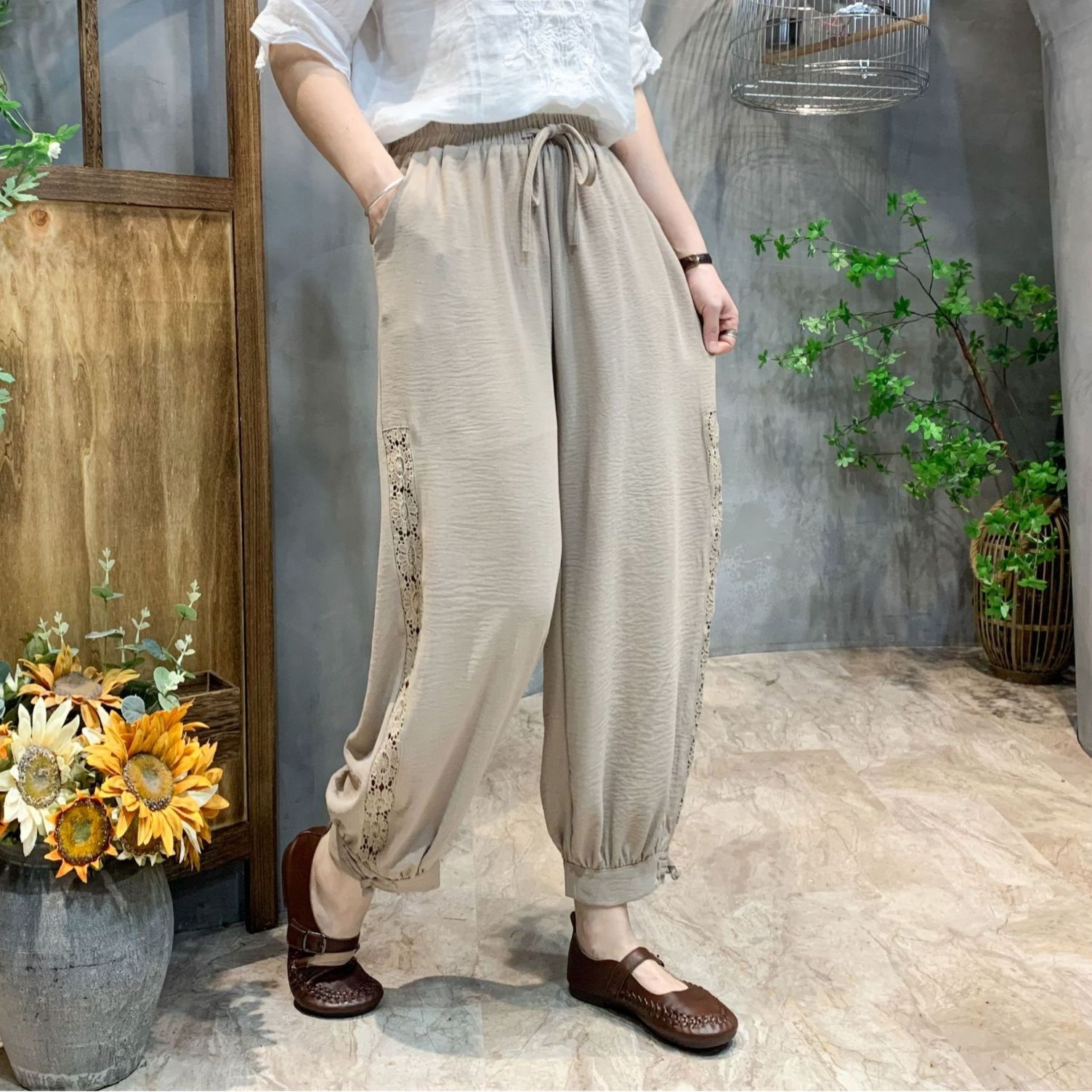 Mom Pants Spring And Autumn Summer Hollow Retro Elastic Waist Straight Harem Carrot Pants Cotton And Linen50-year-old Middle-aged Women's Pants