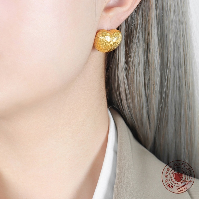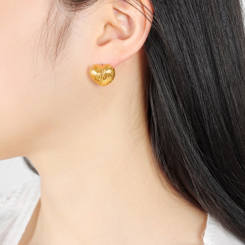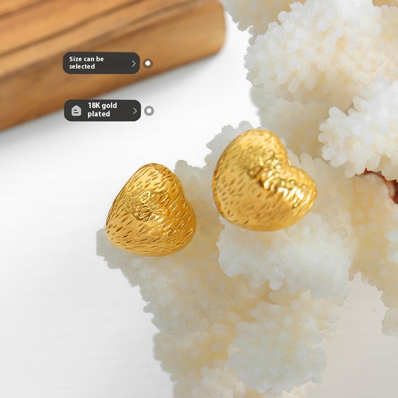 French Heart Earrings Light Luxury Niche No Fading Simple Three-dimensional Metal Style Peach Heart Earrings18 KGold Plated Earrings