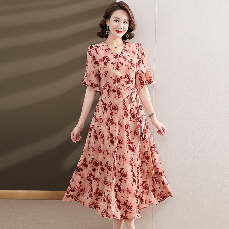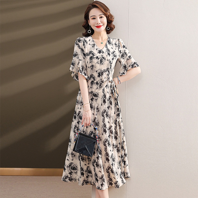 Summer Fashion Mother French Dress Thin Middle-aged And Elderly Elegant Medium-length Chiffon Dress Mixed Batch