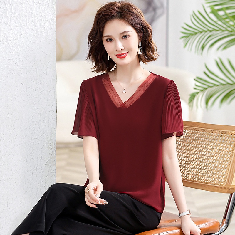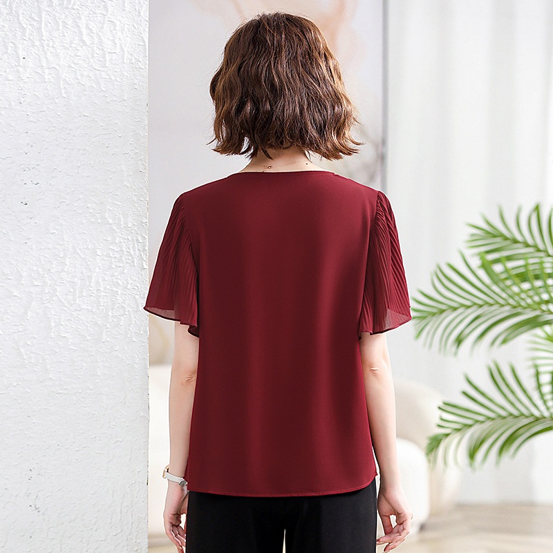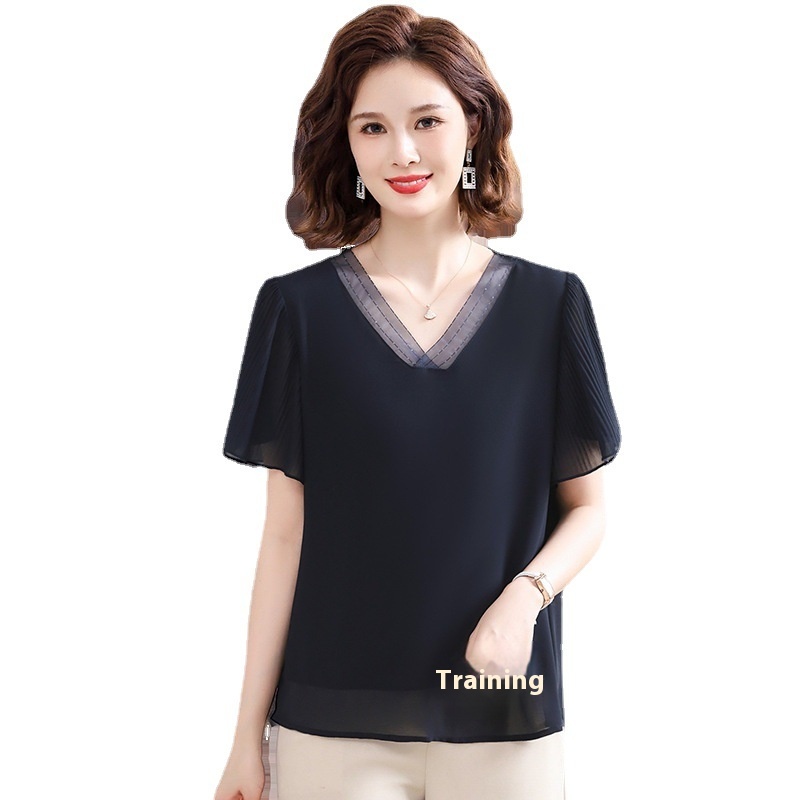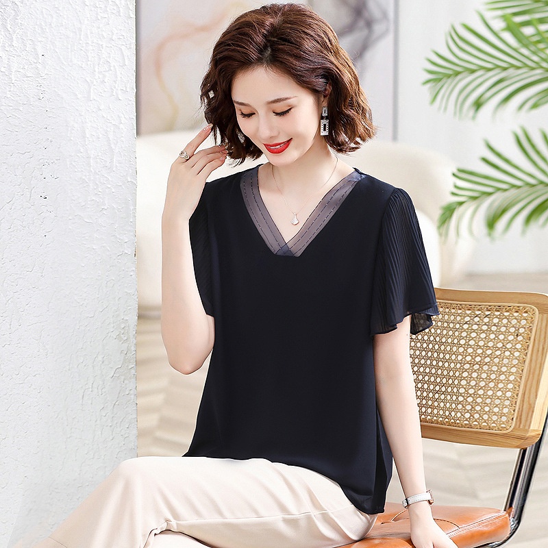Summer Mother's Clothes,Slimming And Belly-covering Temperament Lady Tops For Middle-aged And Elderly Women,Solid Color Flying Sleeves T-shirt