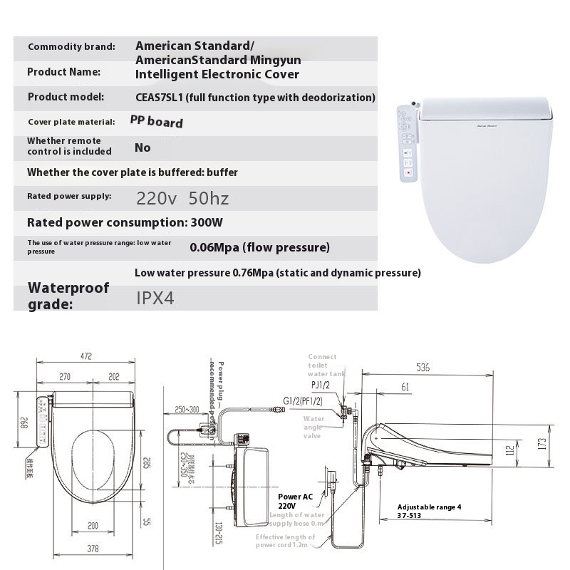 American Standard Fully Automatic Smart Toilet Seat Electric Seat Heating Deodorizing Flushing And Drying C E A S7 S L1
