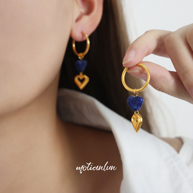 Korean Style Elegant Fresh Sweet Versatile Jewelry Hollow Love Pendant Design Natural Stone Titanium Steel Gold-plated Earrings For Women