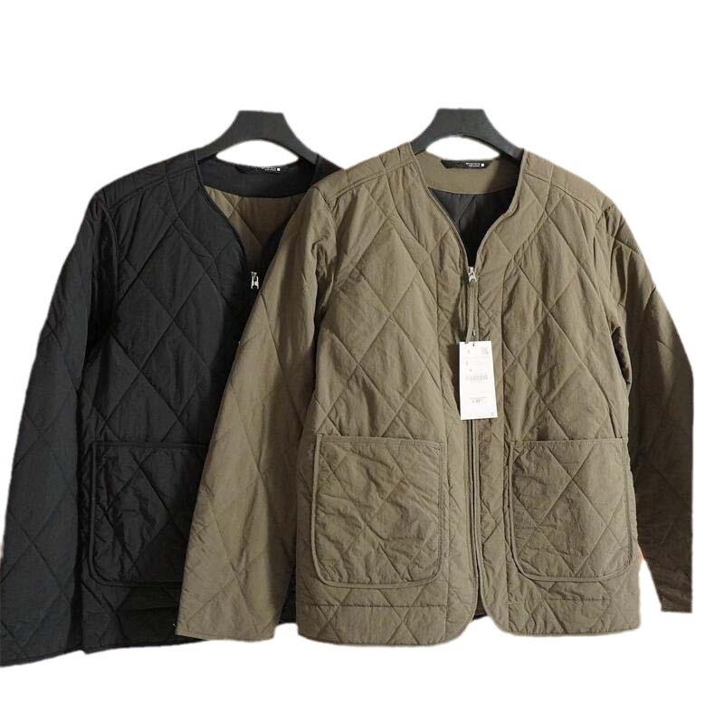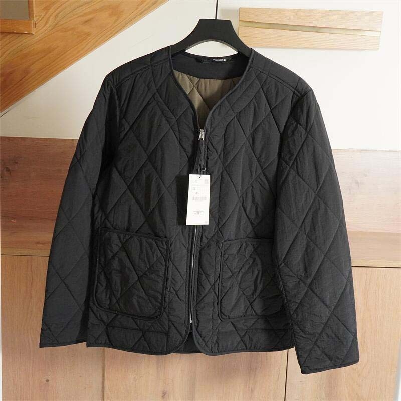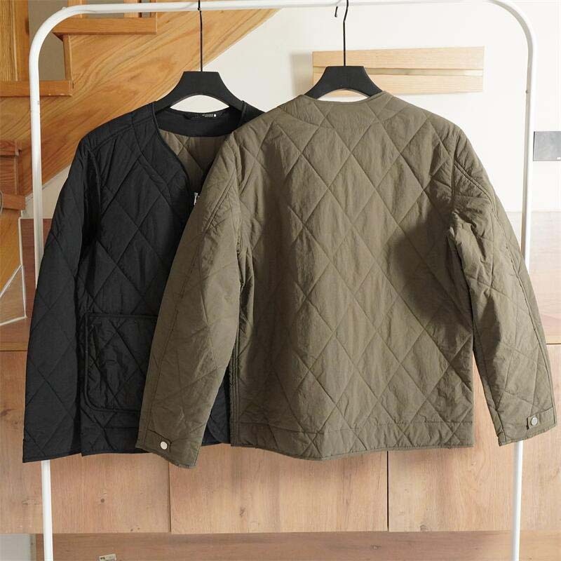 Original-Men's Army Green Black Simple Diamond Zipper Short Thin Cotton Coat Jacket Quilted