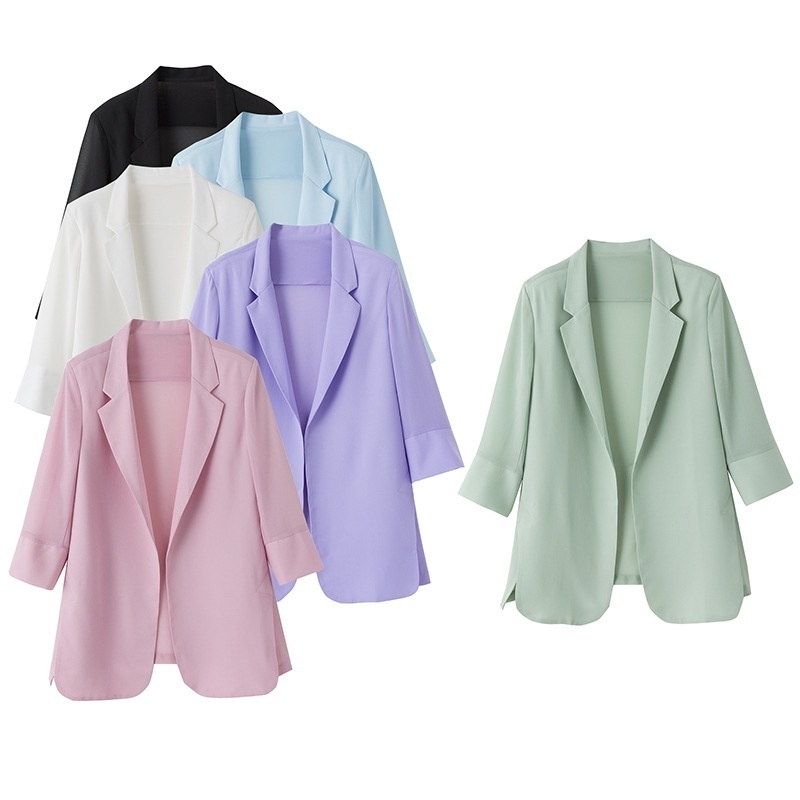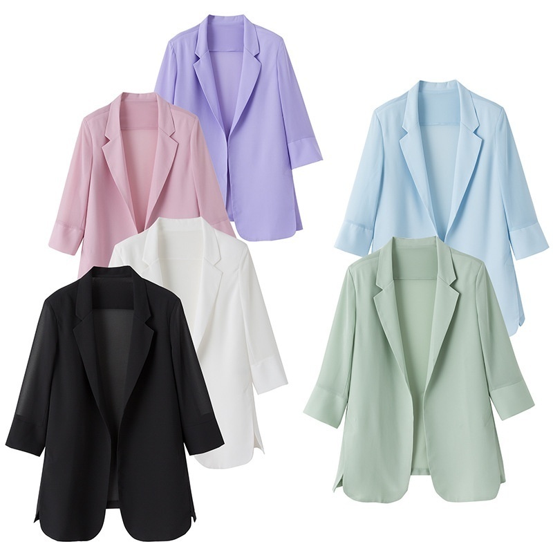 Summer All-match Chiffon Sunscreen Women's Korean Style Casual Loose Solid Color Thin Suit Jacket Women