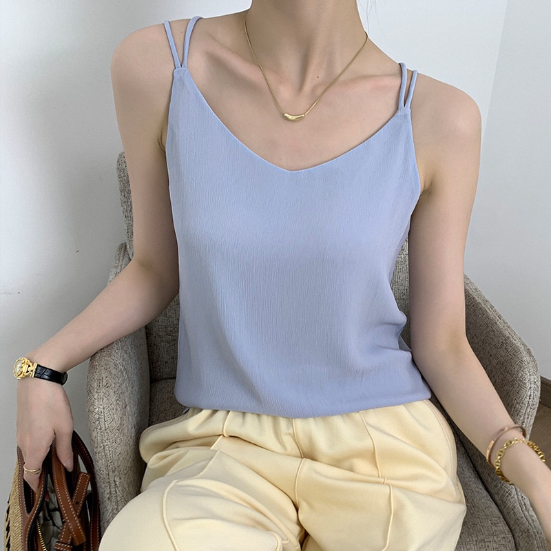 Summer Chiffon V-neck Small Camisole Women's Simple Fashion Vest Beautiful Back Camisole Inner Top