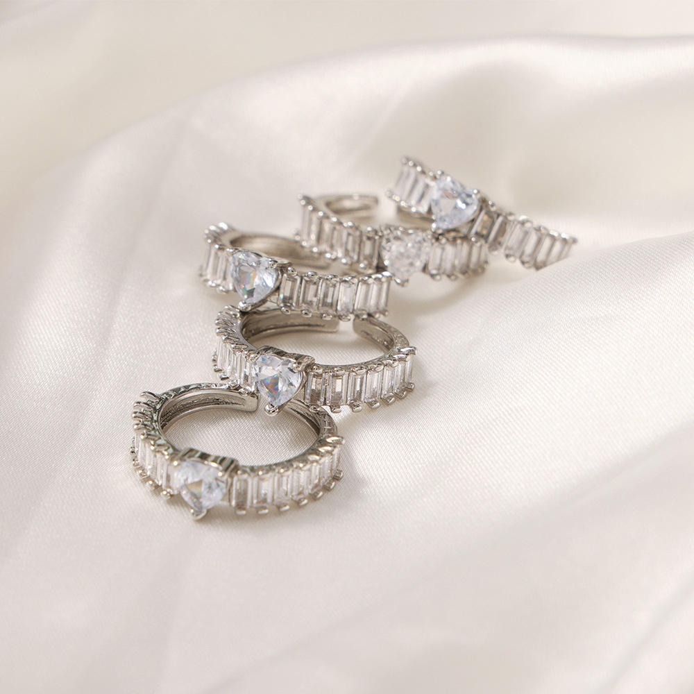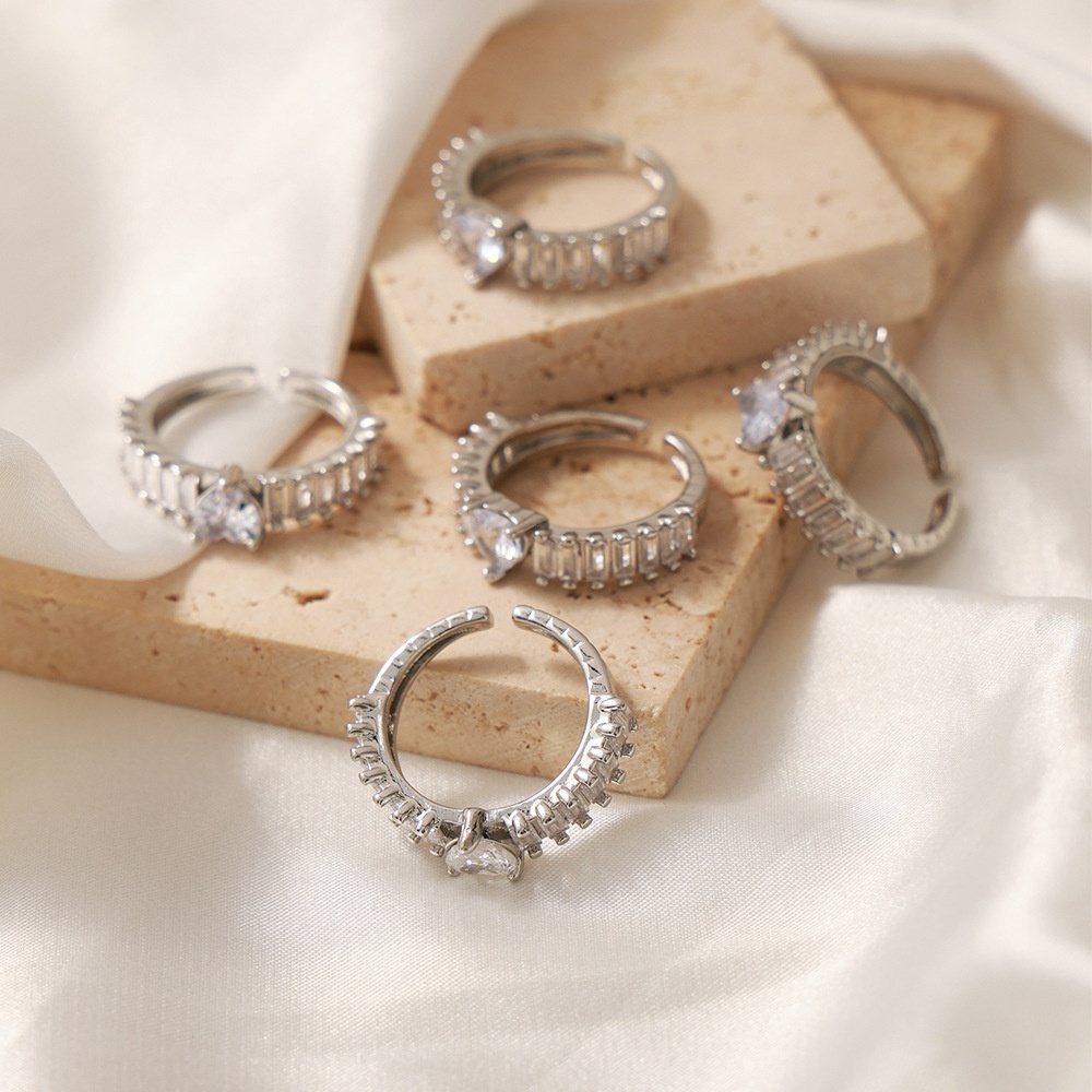 Geometric Jewelry,Inlaid With Zircon Heart Design,Copper Material Open Ring