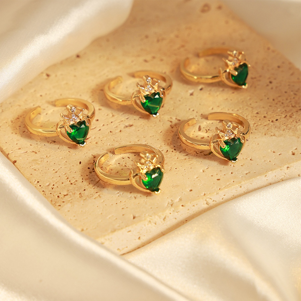 Light Luxury Style Geometric Jewelry Inlaid With Love Zircon Design Crown Shape Copper Material Ring